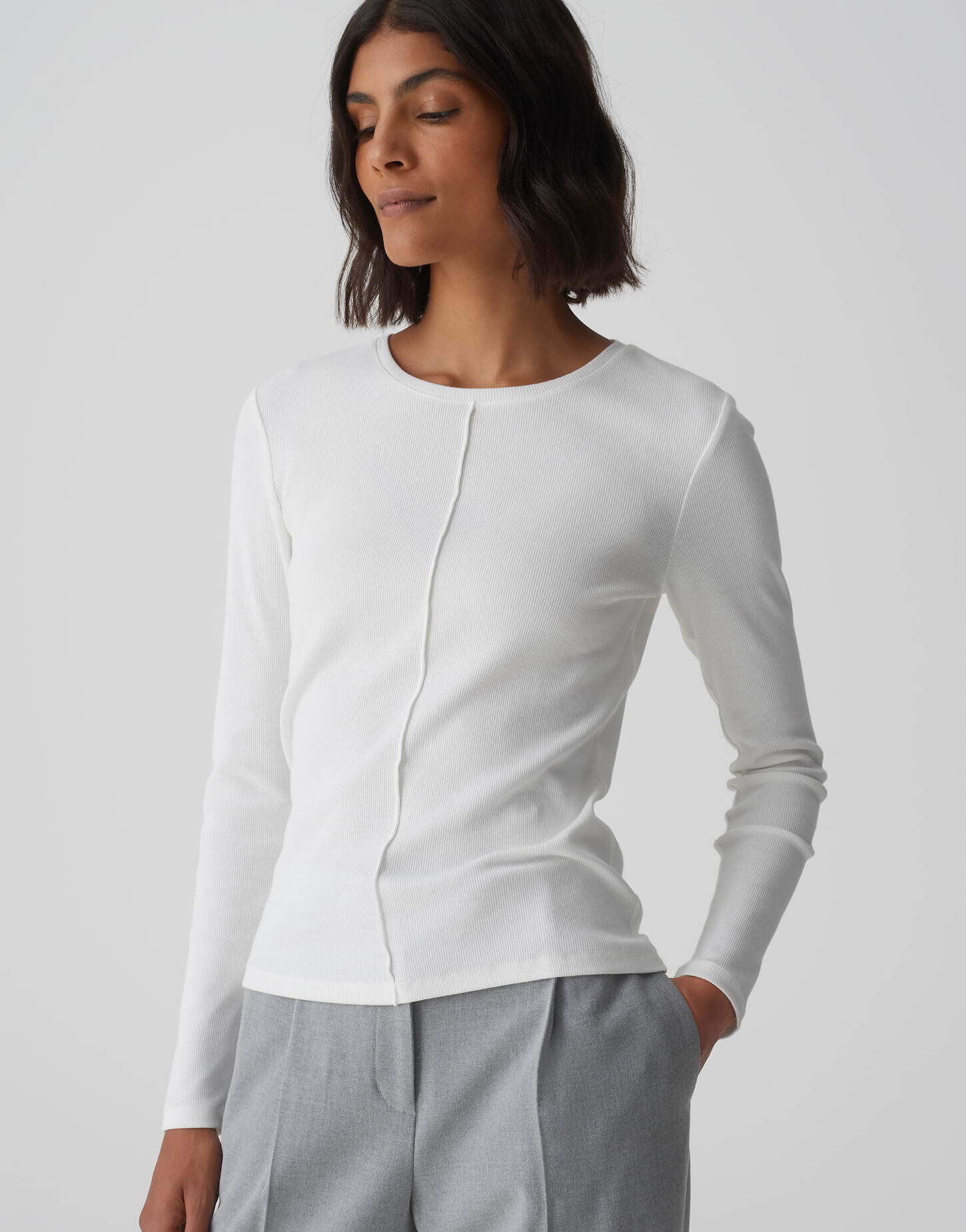 Weniger laut, mehr Ausdruck. Minimalismus 2.0 steht für pure Ästhetik, fließende Formen und luxuriöse Schlichtheit. Weiß in all seinen Facetten und 90s-inspirierte Silhouetten bringen Ruhe in deinen Look – und Stärke in deine Ausstrahlung.
