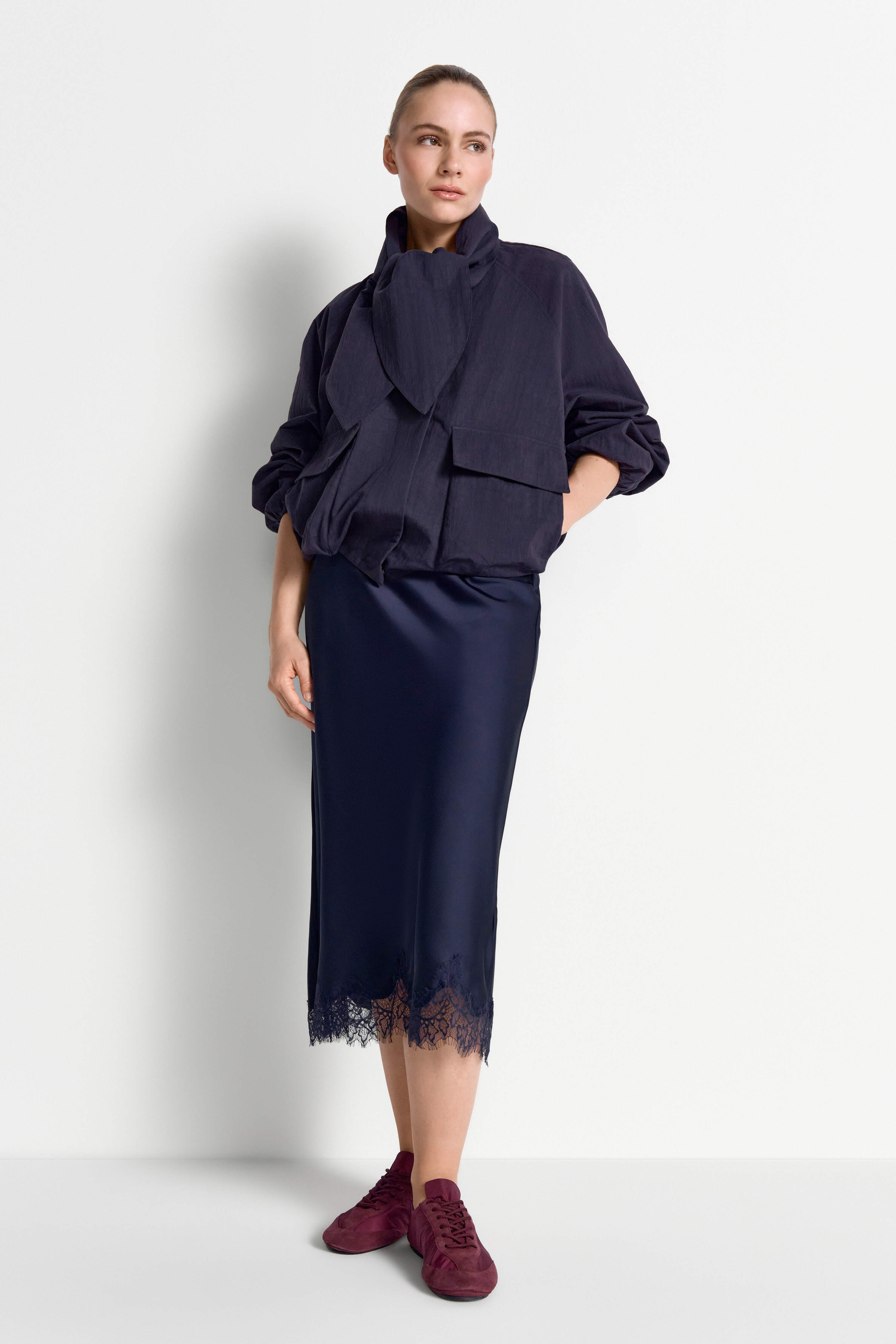 Oversized blouson with detachable bow