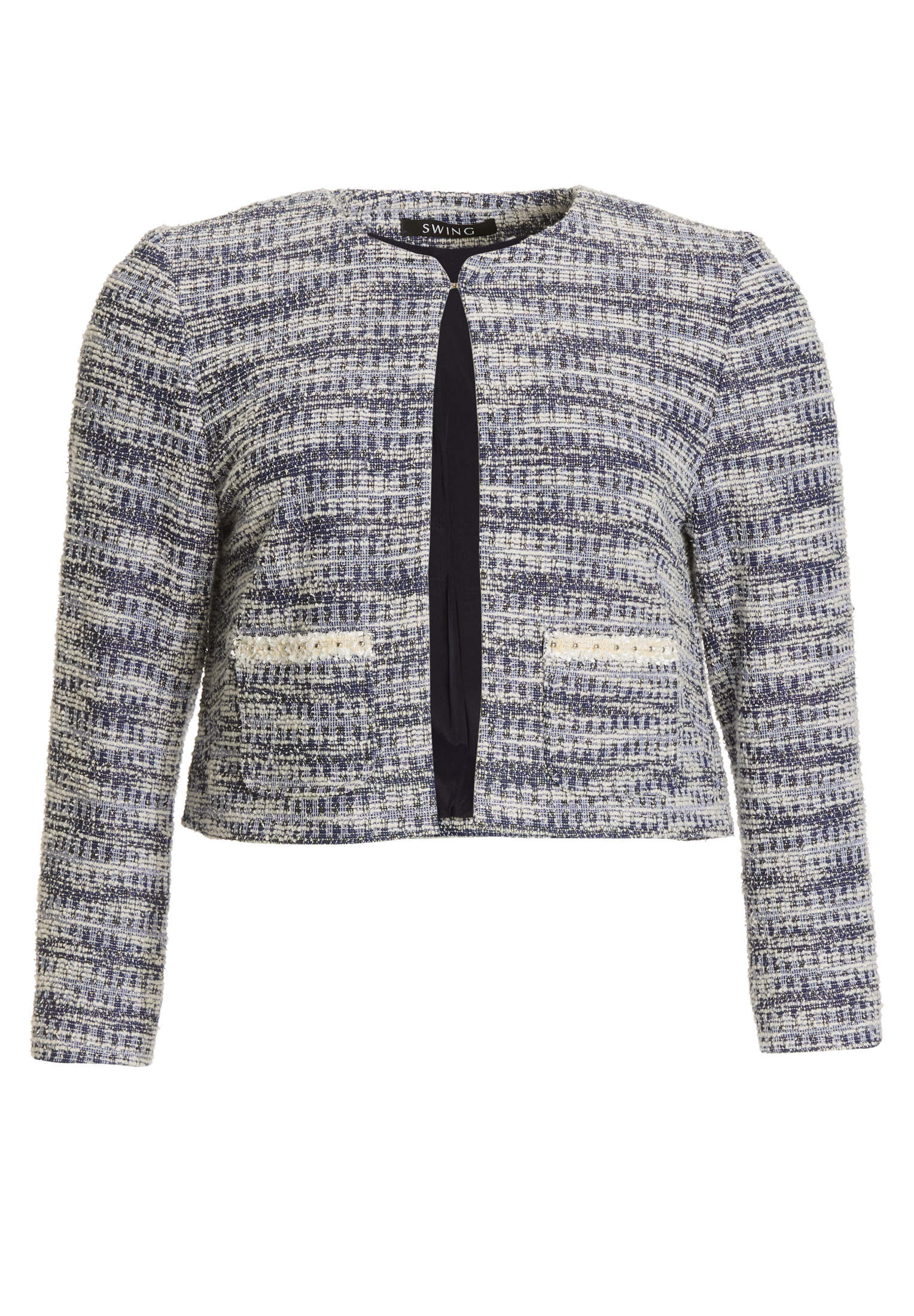 Kastige Jacke aus elastischem Bouclé mit aufgesetzten Taschen