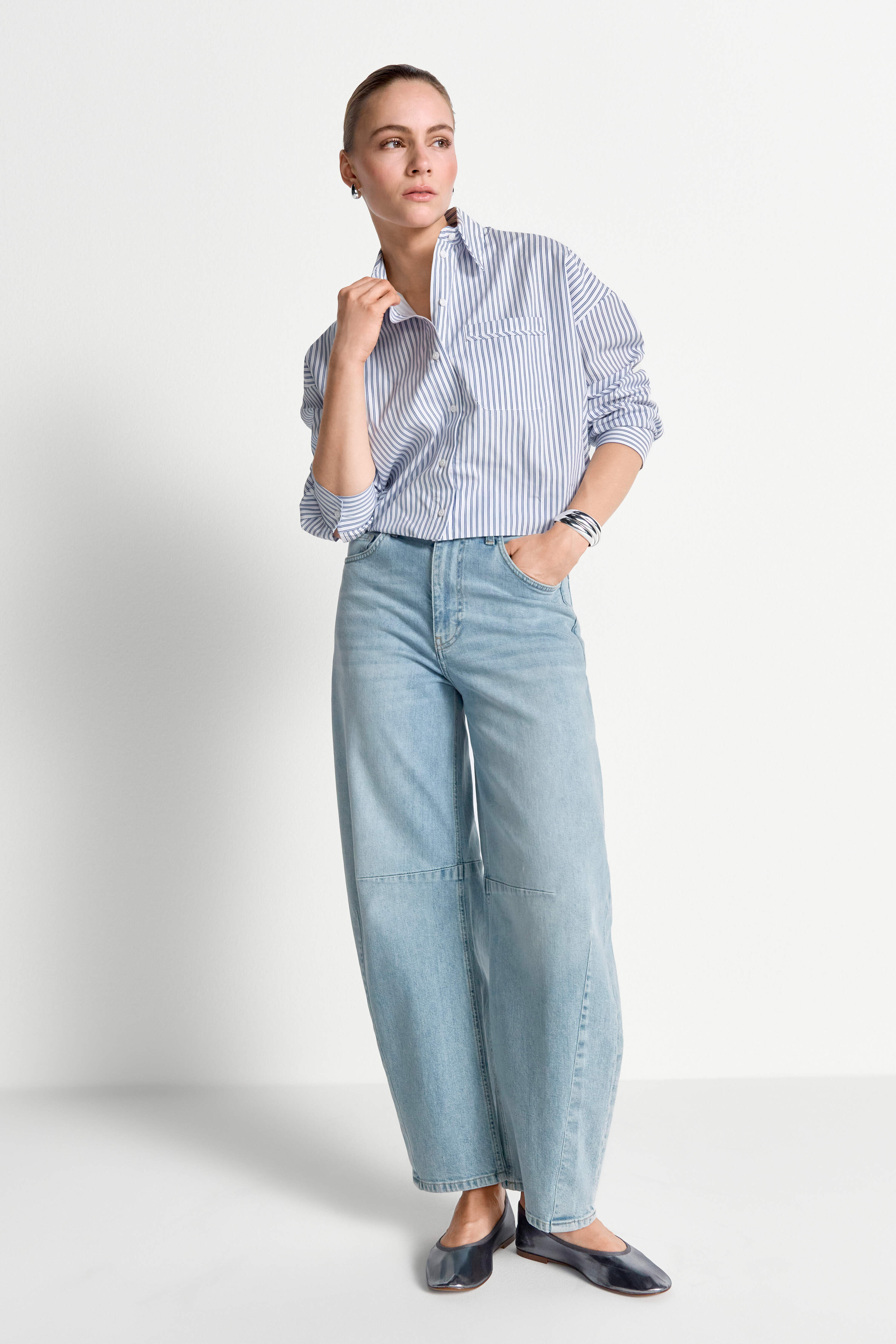 Cotton Striped Balloon Blouse