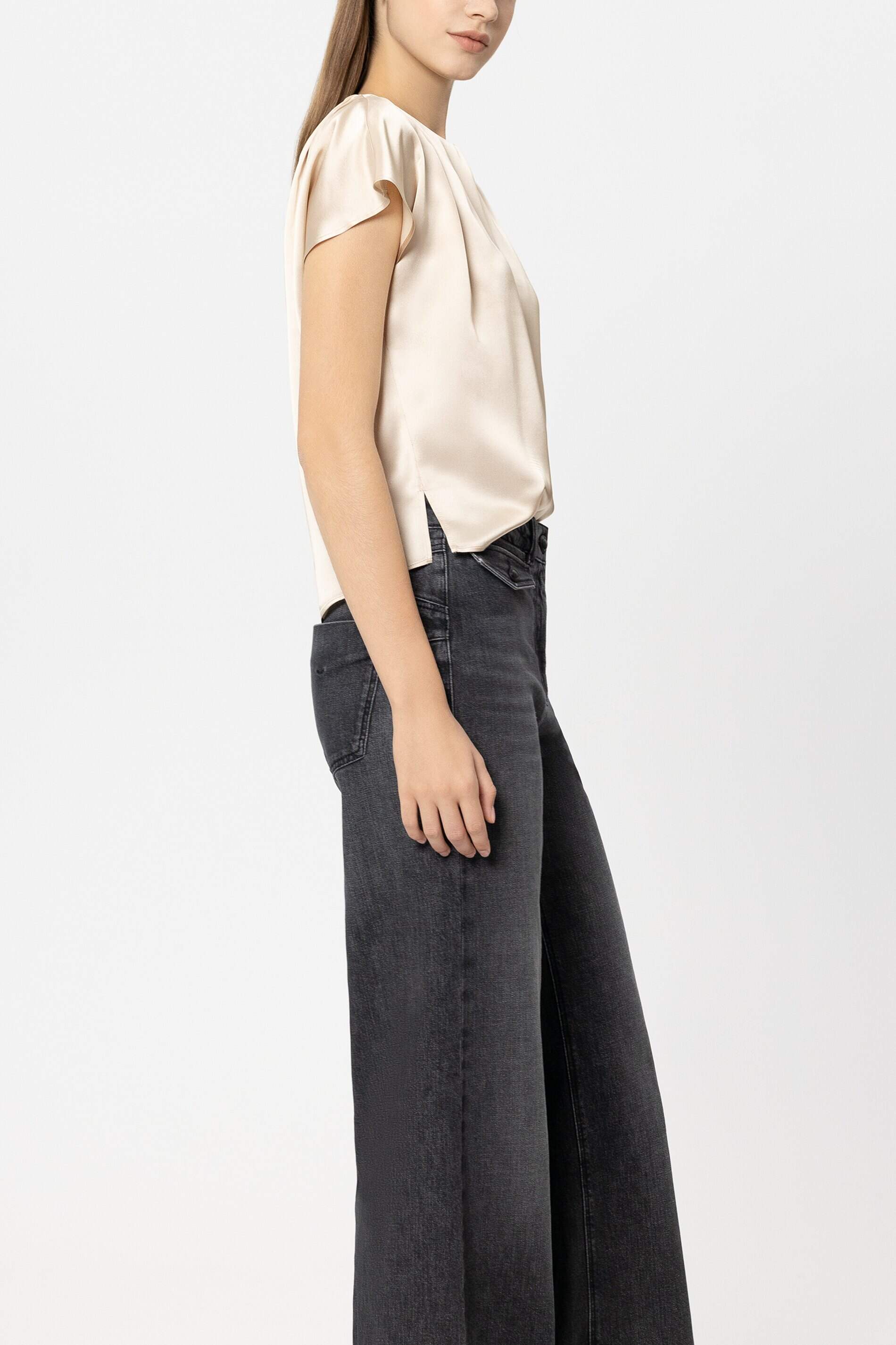 Bluse V-Ausschnitt ohne Arm Materialmix