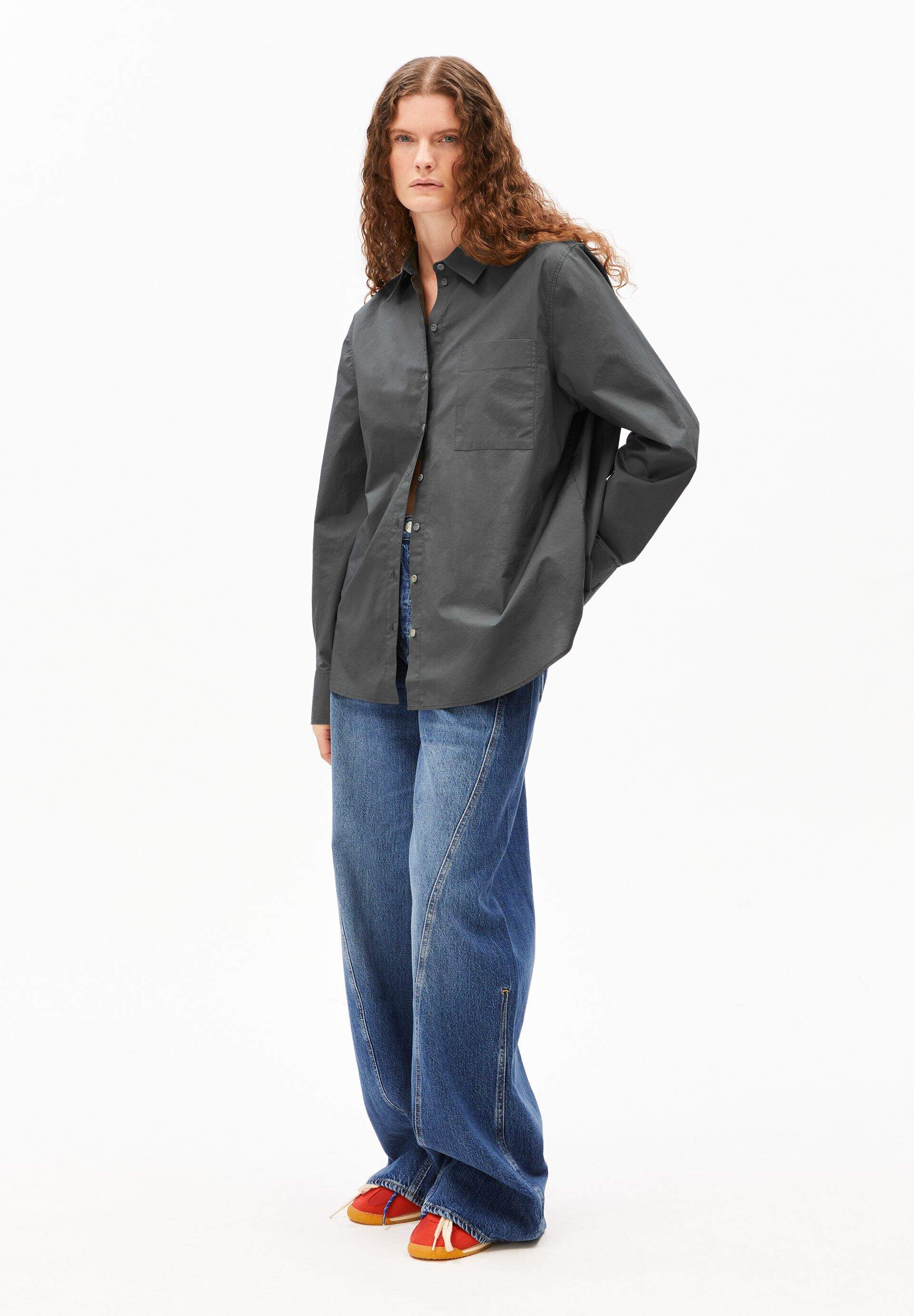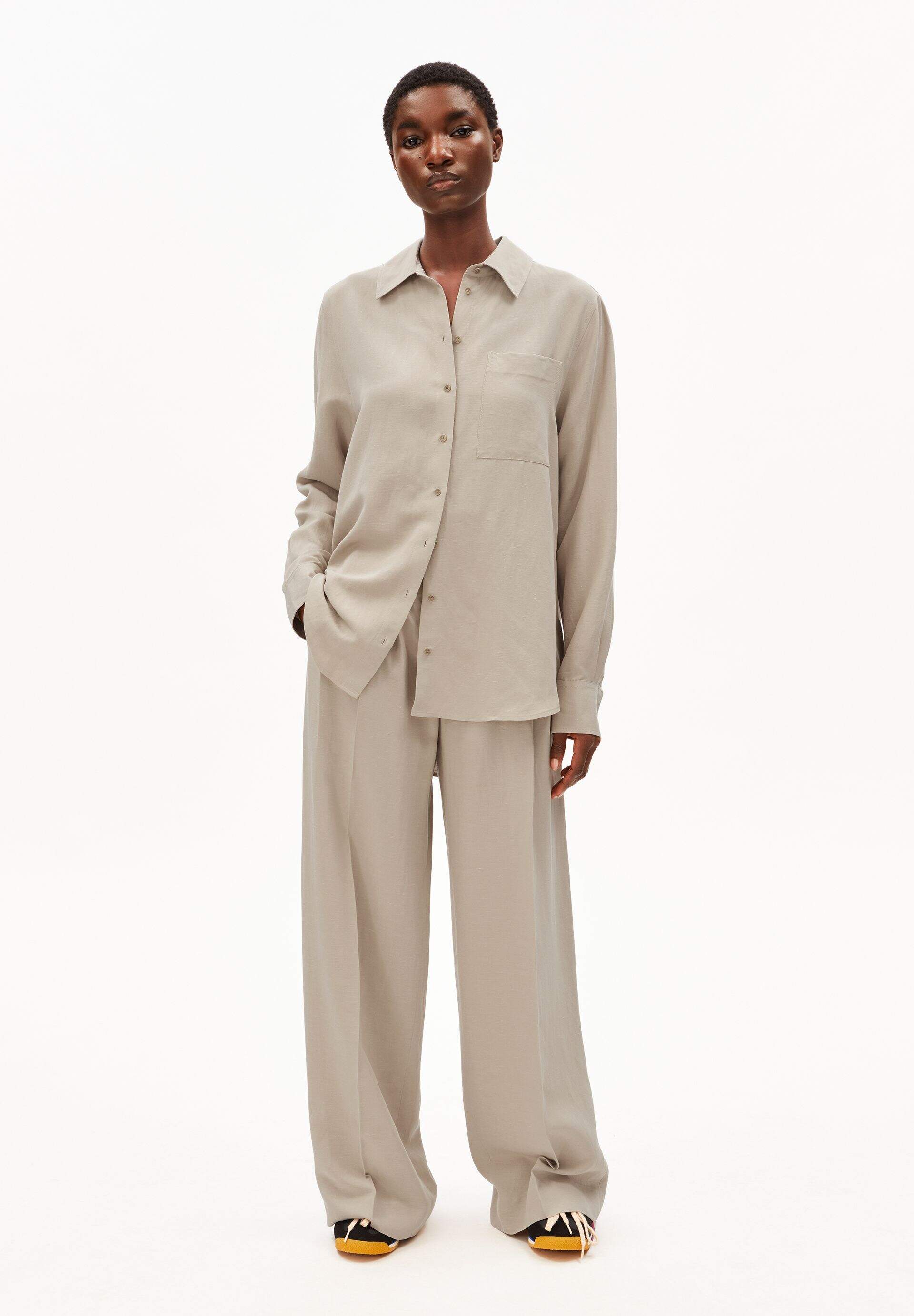 Oversize Hemdbluse mit Leinenanteil