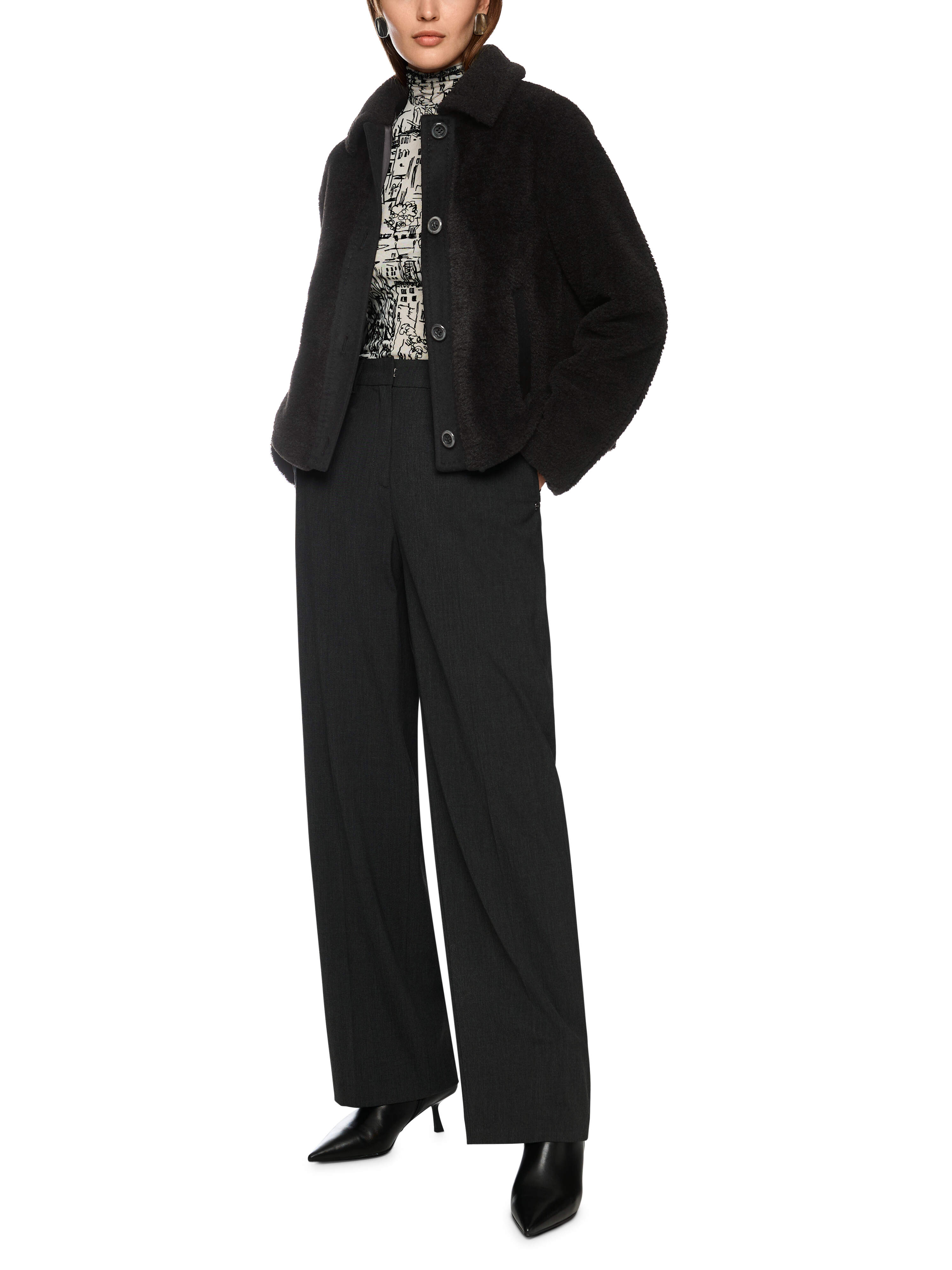 Fake-Fur-Jacke mit Woll-Details