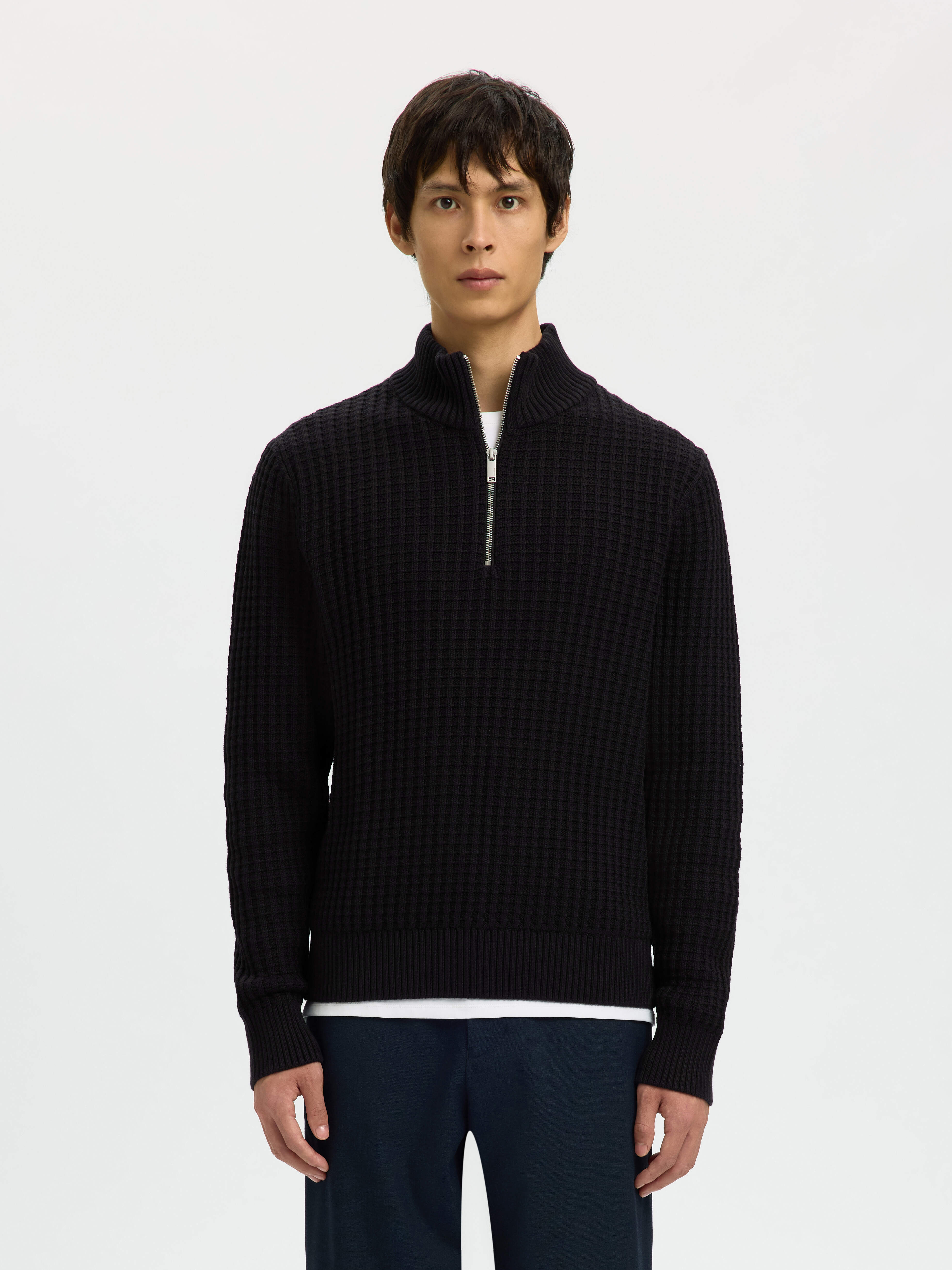SLHTOM LS KNIT STRUCTURE HALF ZIP