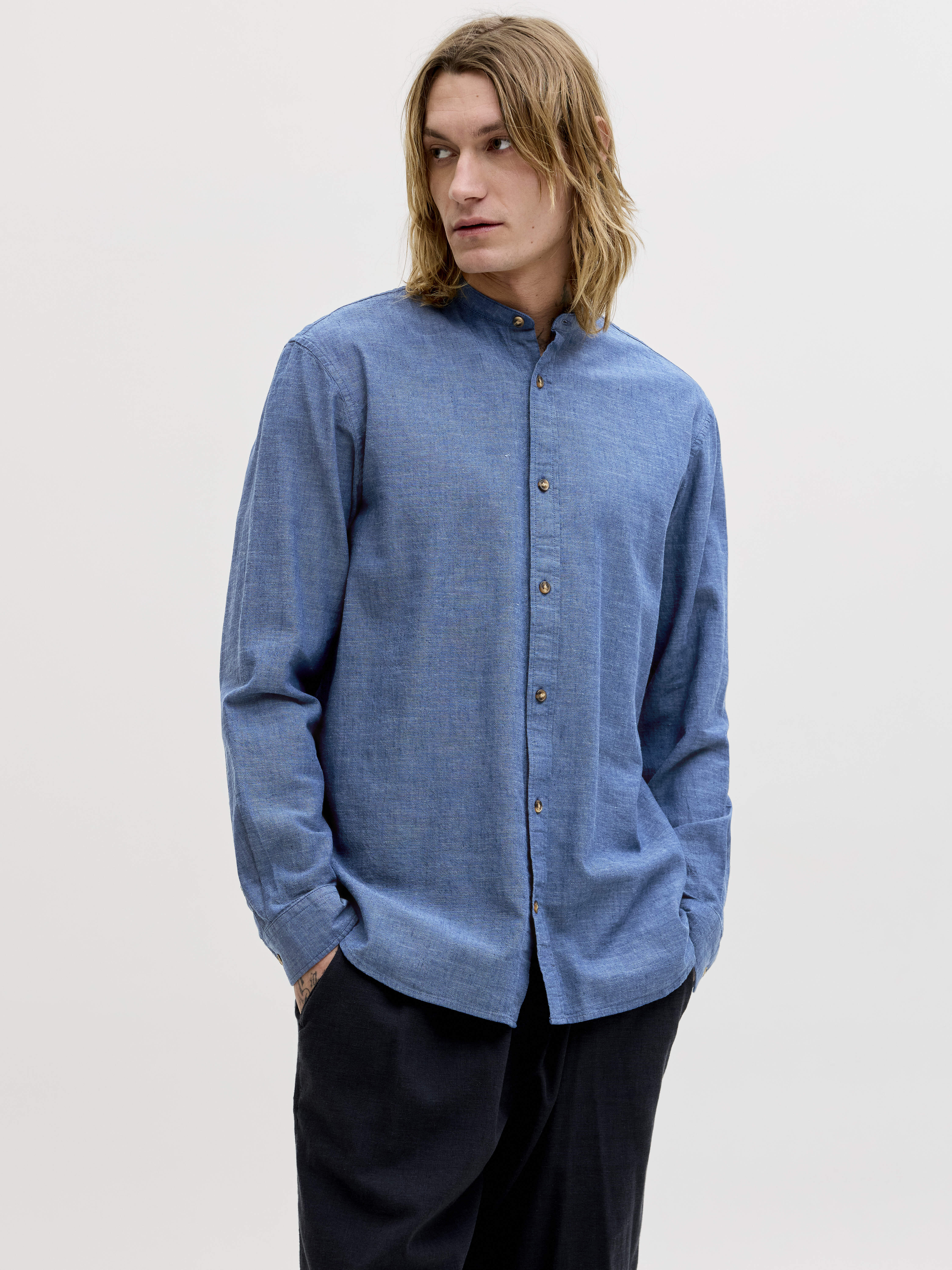 JJESUMMER LINEN BLEND BAND SHIRT L/S SN