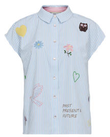 Gestreifte Kurzarmbluse mit verspielter Stickerei