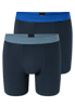 schwarze Herren-Long-Shorts im 2er-Pack mit farbigem Webgummibund (mineral, orange), aus der beliebten SCHIESSER Serie '95/5', farblich abgesetzter, sportlicher Logo-Webgummibund, unsere Models tragen Größe 50/M, in perfekt sitzender, elastischer Single-Jersey-Qualität