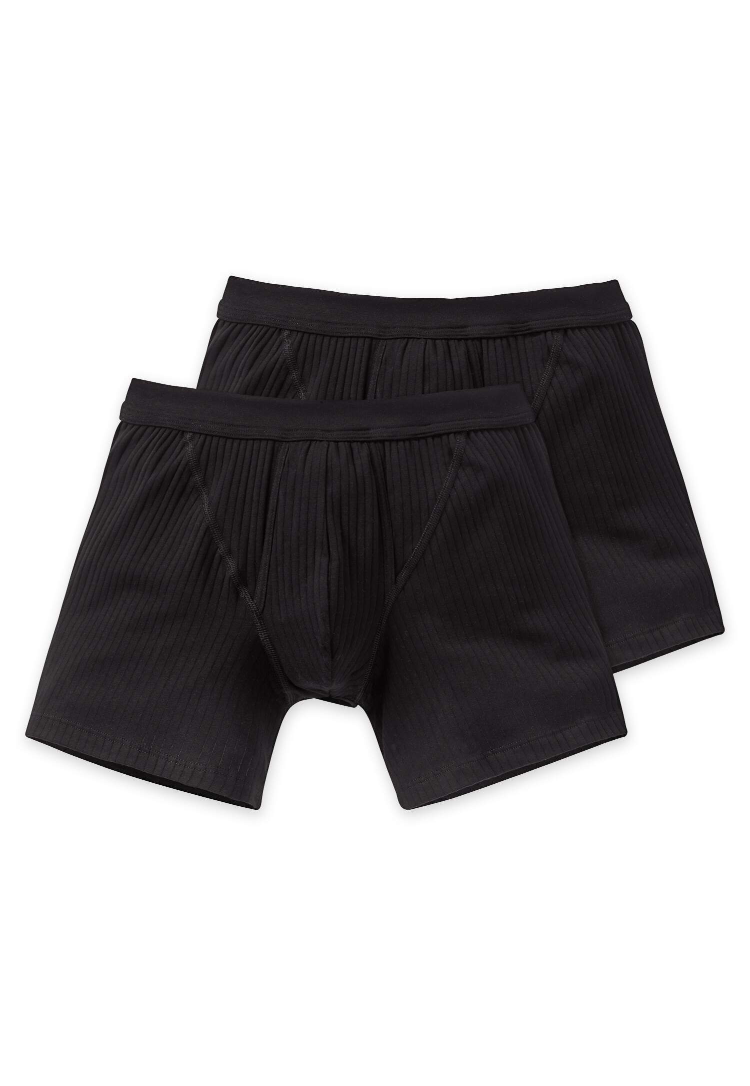 schwarze, körpernahe Herrenshorts im praktischen Doppelpack, aus der SCHIESSER-Serie Authentic, stilvoller Nadelzug, mit Eingriff, komfortabler Bund, flexibel und formstabil / OEKO-TEX® MADE IN GREEN (M24LHNZP3 Hohenstein HTTI), in perfekt sitzender, elastischer Single-Jersey-Qualität