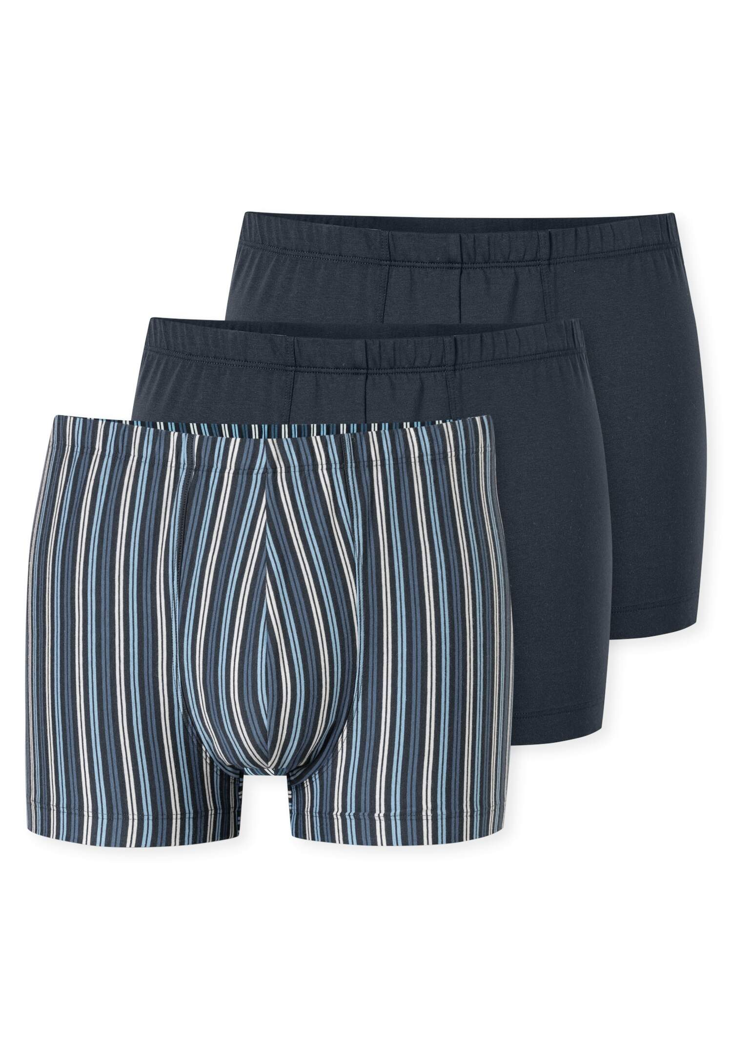 Multipack Herren-Shorts (2x schwarz, 1x blau gestreift), aus der beliebten SCHIESSER Serie '95/5', mit softem, tonalem Komfortbund, auch in großen Größen erhältlich , unsere Models tragen Größe 5/M, in perfekt sitzender, elastischer Single Jersey-Qualität
