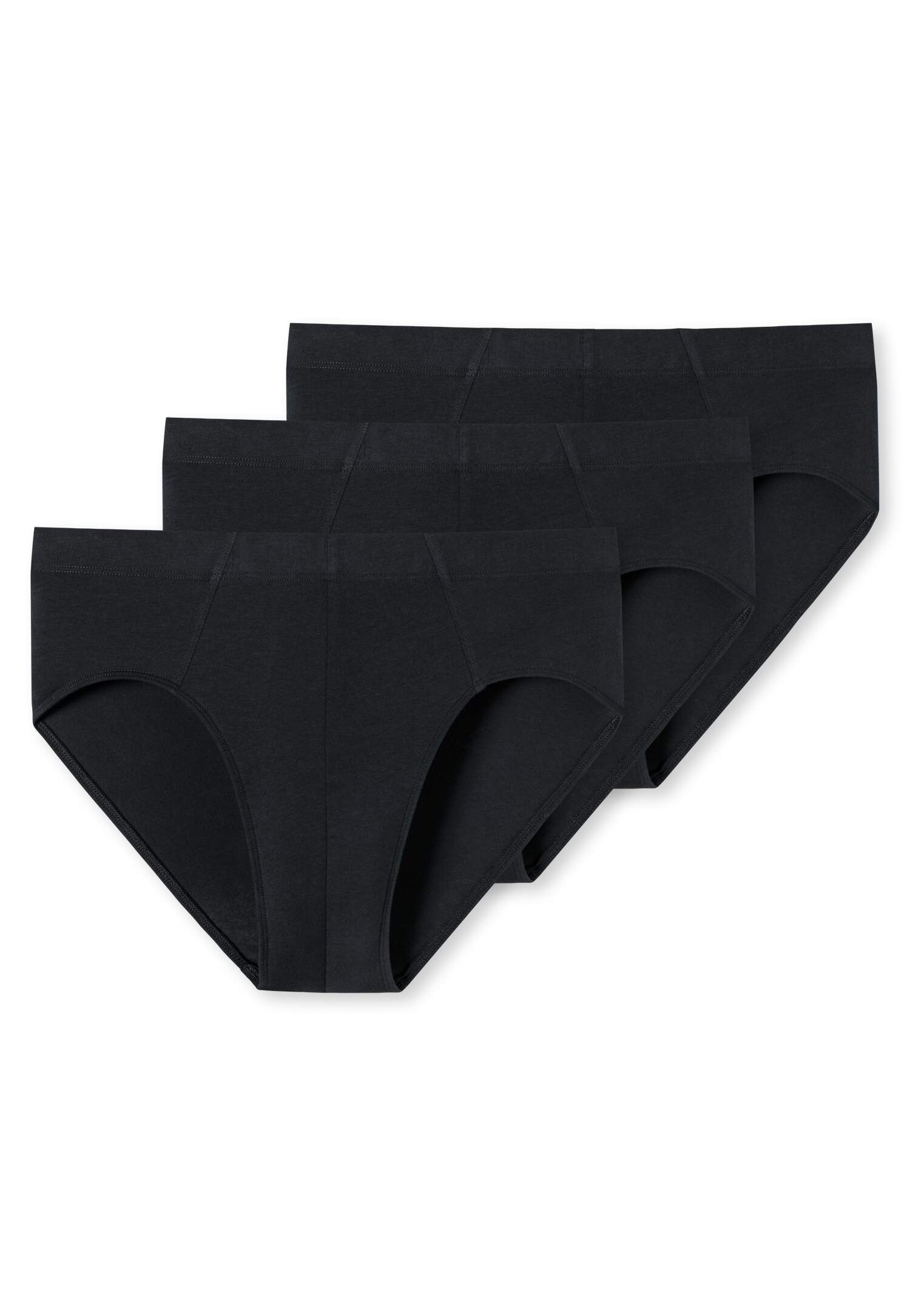 Herren-Supermini-Slips in Schwarz, Dunkelblau und Grau-Melange im praktischen Dreierpack, aus der beliebten SCHIESSER-Serie '95/5', mit softem, tonalem Komfortbund, extra bequemer Beinausschnitt, modische Ziernhähte, höchster Tragekomfort und verbesserte Passform mit 95% natürlicher Baumwolle und 5% Elastan, in perfekt sitzender, elastischer Single-Jersey-Qualität
