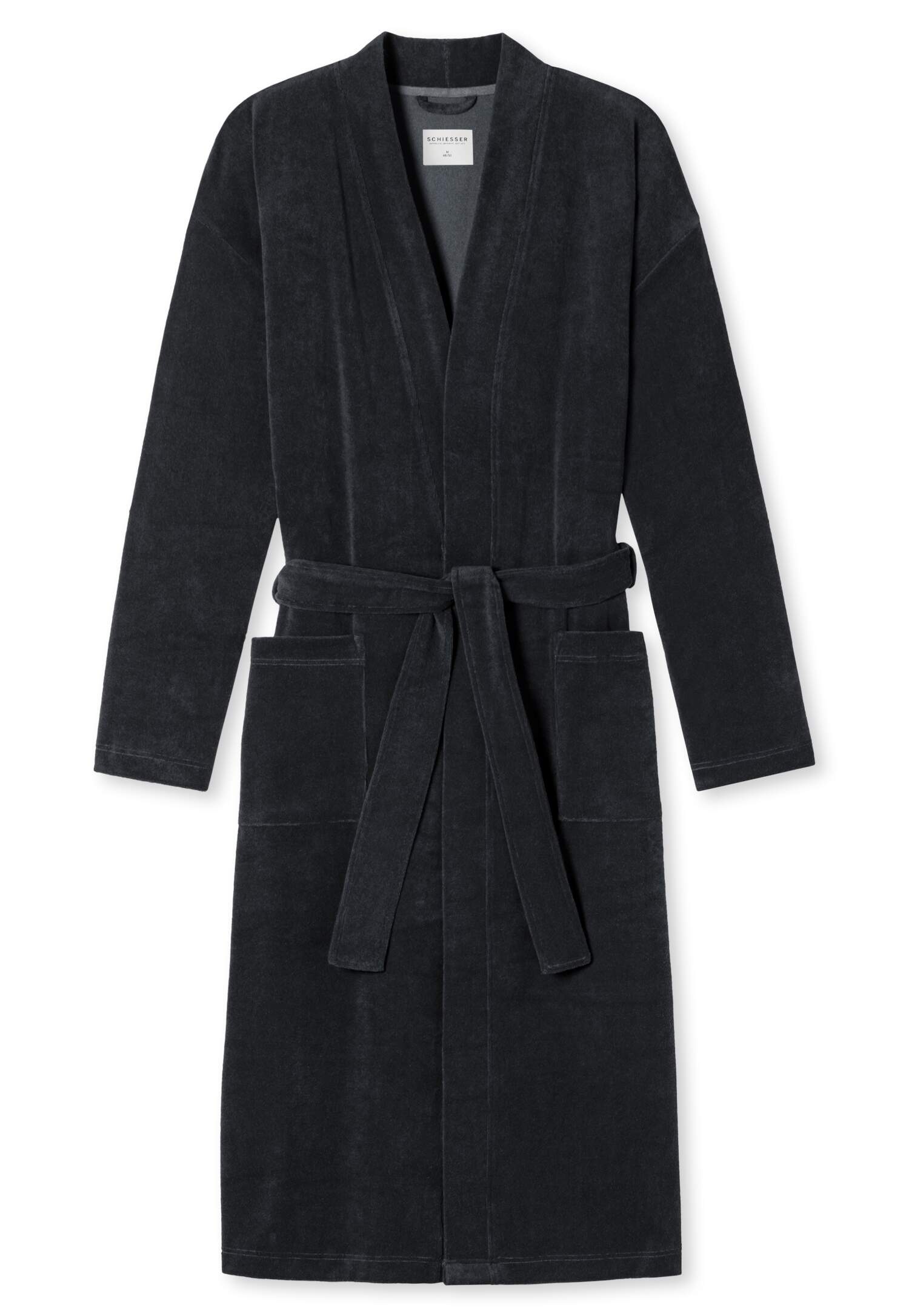 leichter Herrenbademantel in Anthrazit, SCHIESSER 'Feather Terry' Bademantel, Comfort Fit, 120 cm lang, mit Bindegürtel und Seitentaschen, ideal zum Mitnehmen in Bade- oder Sporttasche, leichter Frottee mit hohem Anteil an Bio-Baumwolle