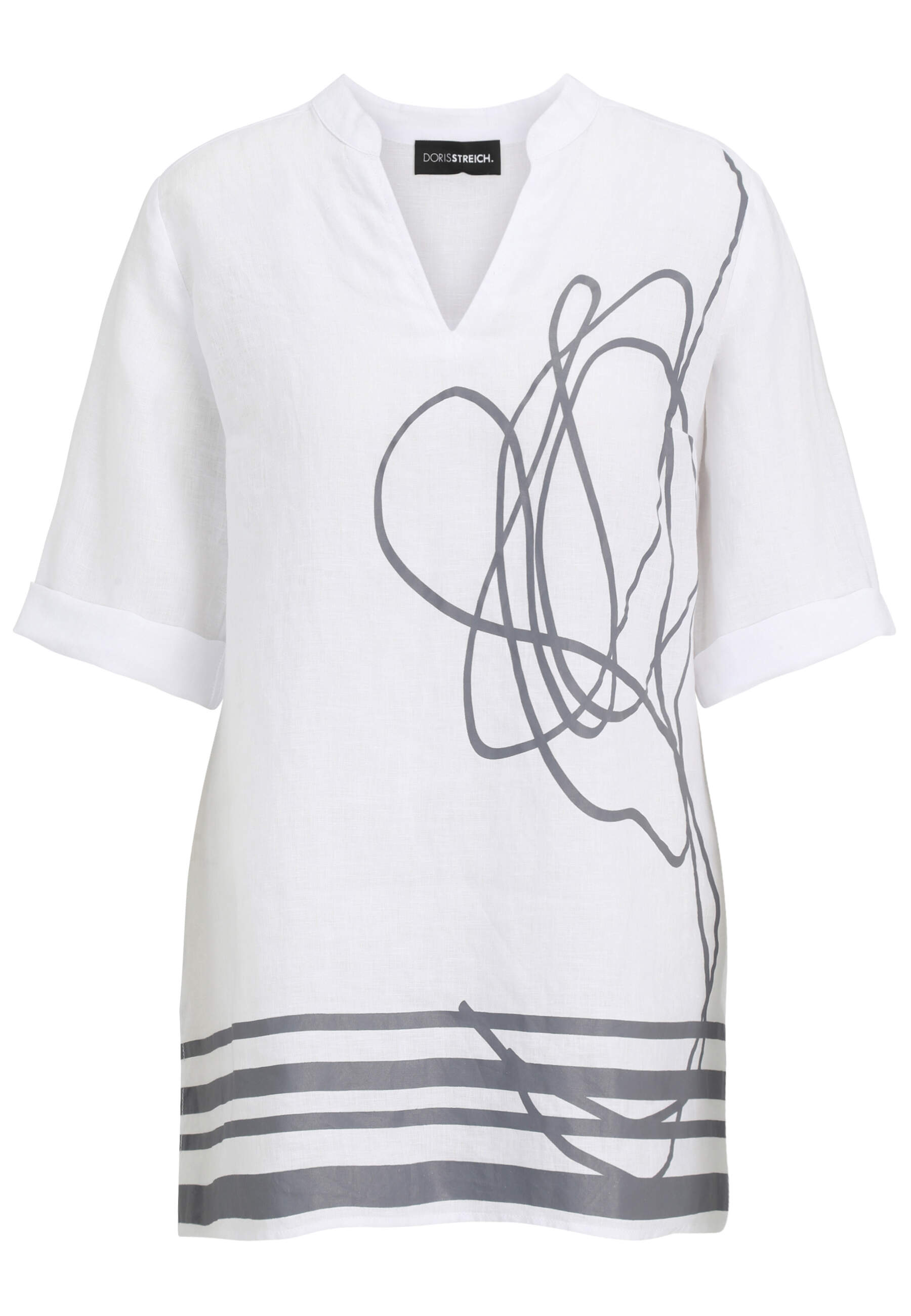 Doris Streich Bluse aus luftig leichtem Leinen mit Motivprint und Krempelärmel
