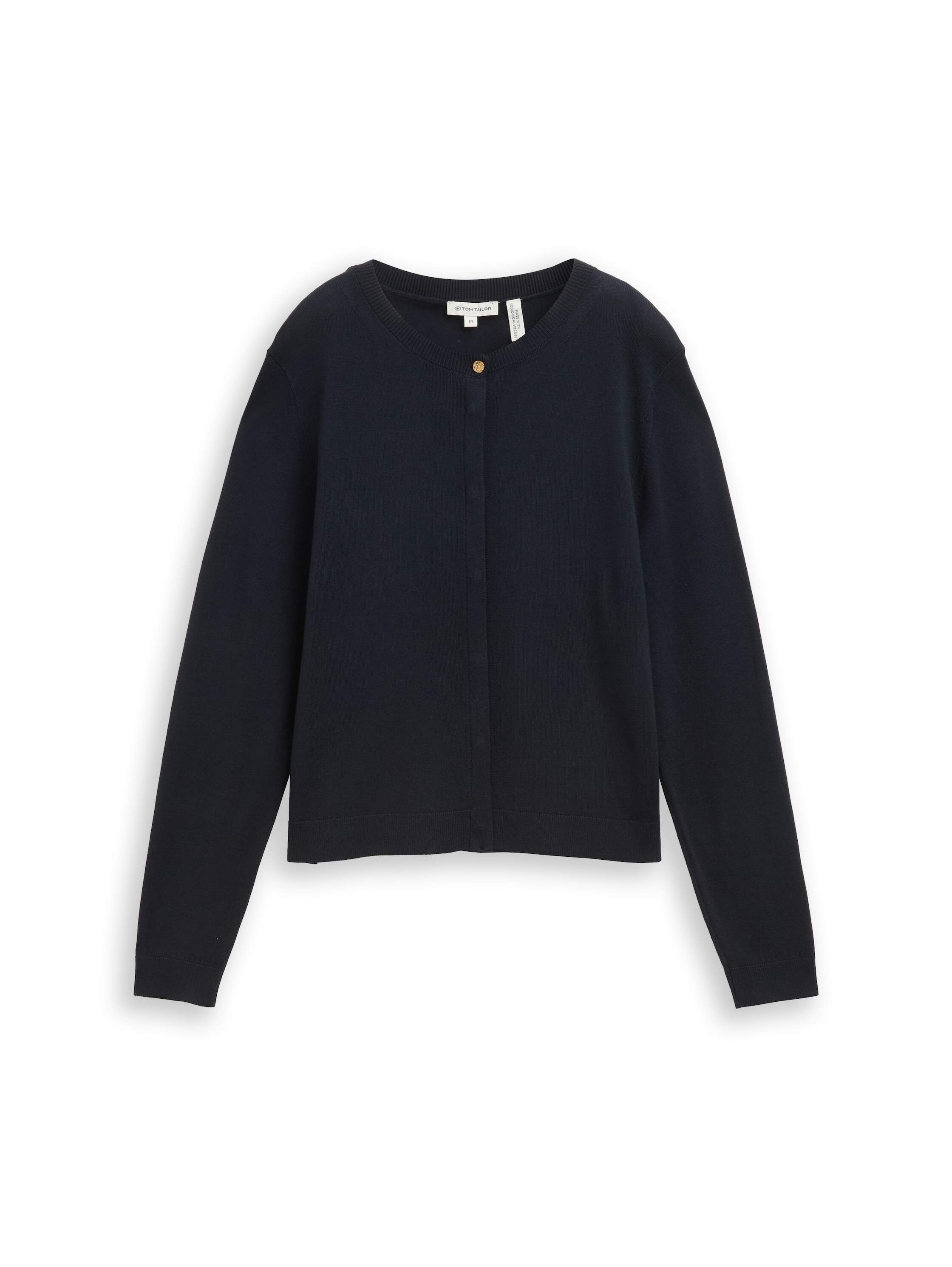 Strickjacke mit Rundhalsausschnitt, verdeckter Knopfleiste und Knopf-Detail am Ausschnitt