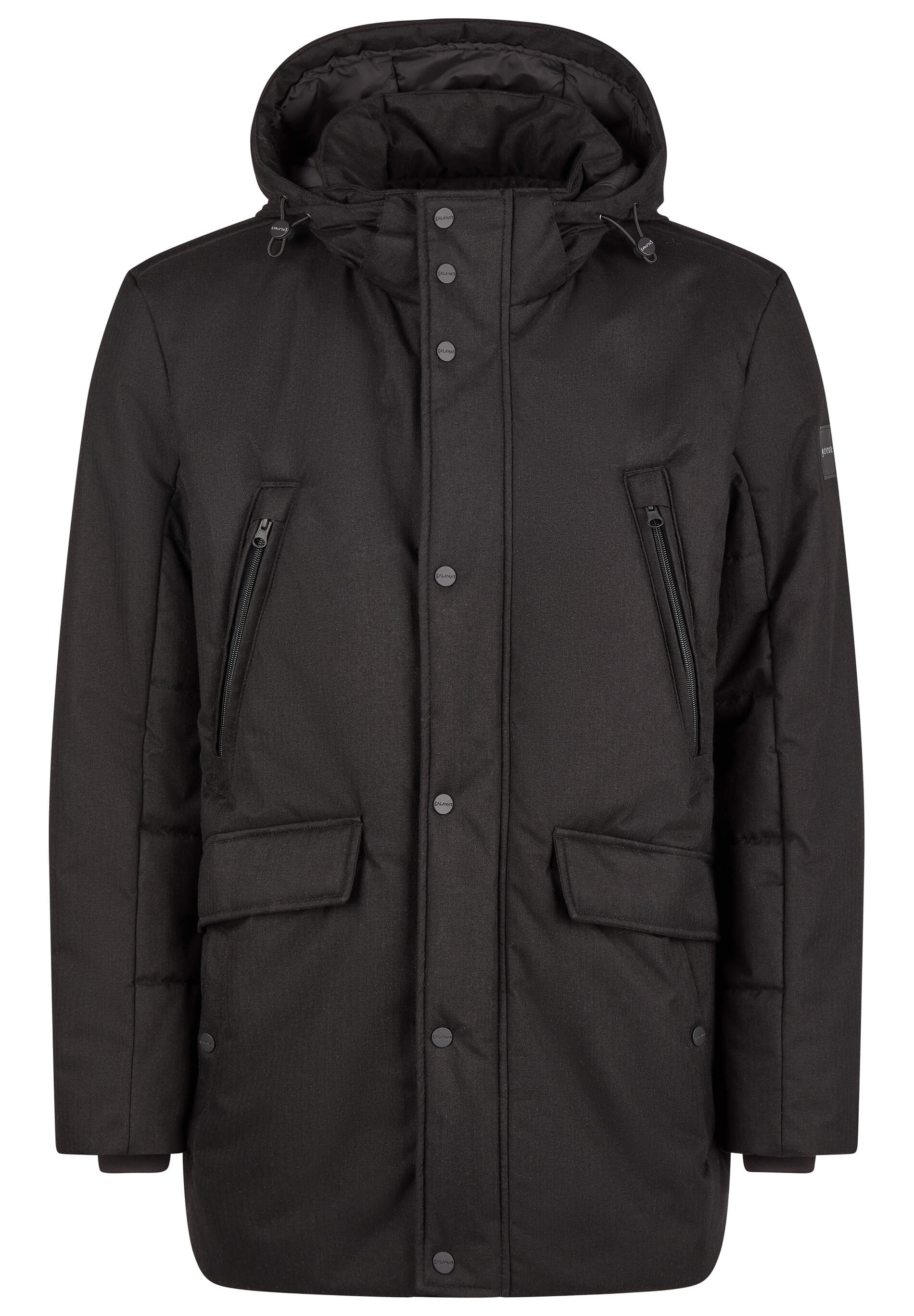 Leicht zugaengliche Seitentasche, Gestrickter Windschutz am B»ndchen, Abnehmbare Kapuze mit Knopf und Reissverschluss, Verstellbare Kapuze mit Kordel und Stopper, Fein strukturiertes Gewebe in Wolloptik