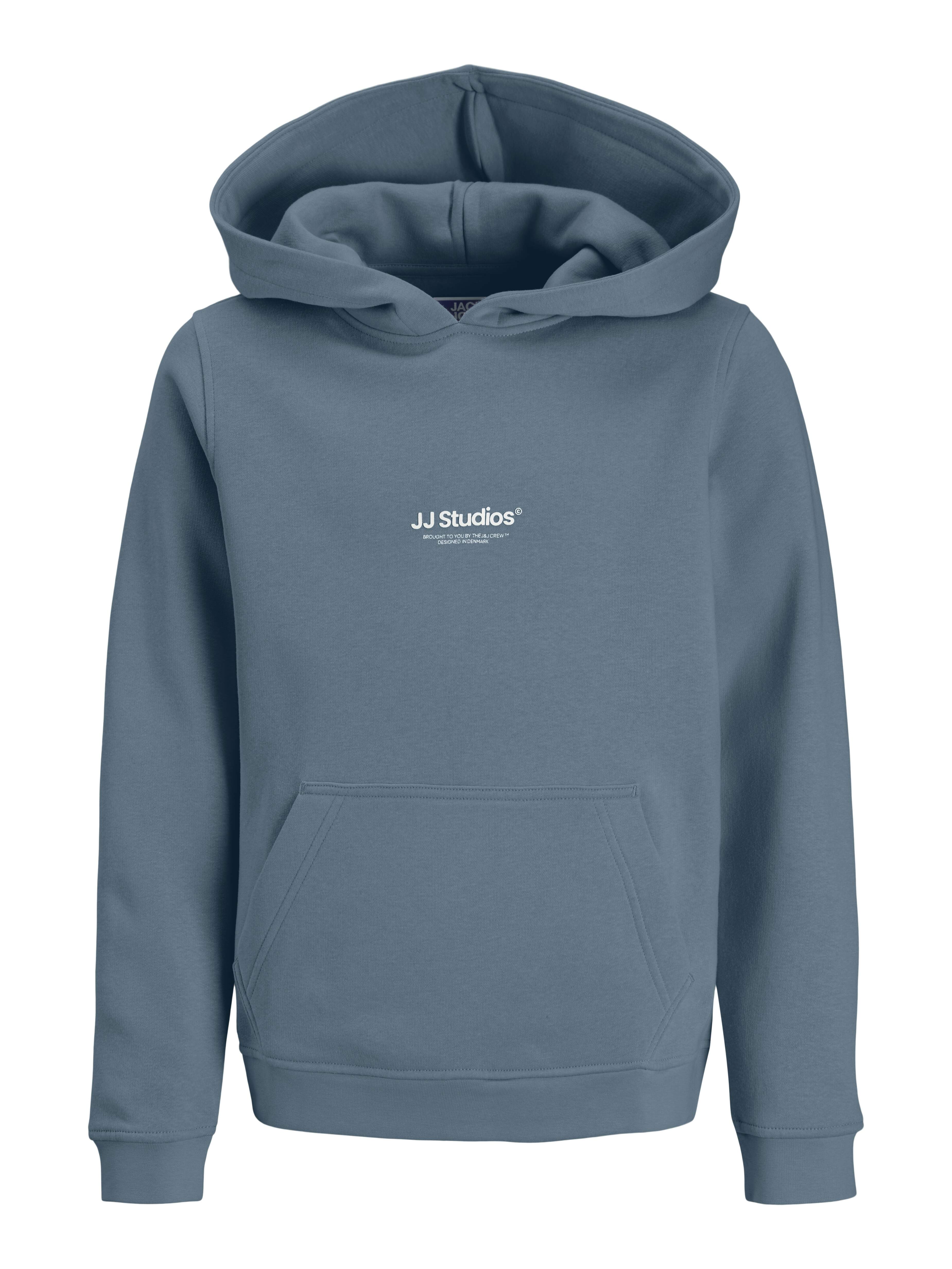 Keine Garderobe ist komplett ohne einige bewährte Basics wie Sweatpants.Angerauter Stoff mit einer weichen Innenseite. Leicht angeraute Stoffe haben eine etwas flauschigere Innenseite, die sich weich anfühlt.Entdecke die aufregende Welt von Jack and Jones Junior, in der Mode durch jugendliche Energie und lebhaften Charme zum Leben erweckt wird. Unsere Kollektionen bieten eine Mischung aus neuen, trendigen Designs, die Jungen im Alter von 3-16 Jahren ansprechen. Tauche in hochwertige und bequeme Styles ein, die speziell für junge Fashion-Liebhaber entwickelt wurden. Bei Jack and Jones Junior interpretieren wir Mode für Jungs im Alter von 3 bis 16 neu, indem wir coole Passformen und moderne Styles kombinieren und dabei immer wieder Elemente aus der Erwachsenenmode einfließen lassen.. - Produkttyp : Kapuzenpullover - Hals : Kapuze - Ärmel : Langarm - Ärmel : Eingesetzte Ärmel - Taschen : Känguru Tasche - Passform : Locker geschnitten