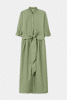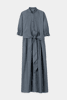 Langes Hemdblusenkleid mit durchgehender Knopfleiste aus hochwertiger Baumwoll-Popeline. Das ausgestellte Kleid verfügt über einen Biesenplastron, einen Bindegürtel in der Taille sowie charmante Rüschendetails.