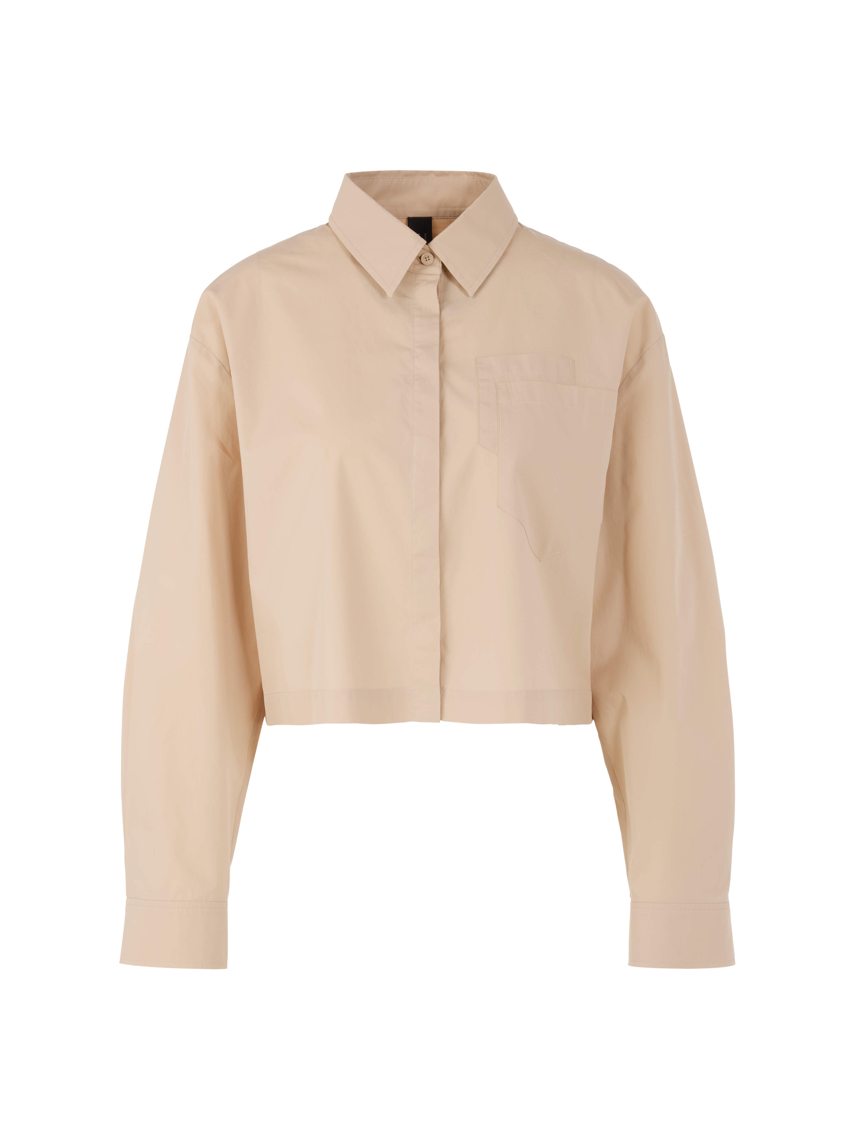 Kurze Bluse 'Rethink Together'|Die kurze, locker geschnittene Bluse aus 100 % Biobaumwolle bietet besonderen Tragekomfort. Eine elegante Kellerfalte im Rücken sorgt für eine feminine Silhouette. Ärmel mit Zweiknopf-Manschetten und Raffungen sowie eine durchgängige, verdeckte Knopfleiste verleihen einen modernen Look. Die doppelte Brusttasche rundet das Design stilvoll ab. Die Bluse trägt das Nachhaltigkeitslabel 'Rethink Together'.|Locker geschnitten|Kurze Form|Durchgängige Knopfleiste|Zweiknopfmanschetten|Das Model ist 179 cm groß und trägt N3/38.