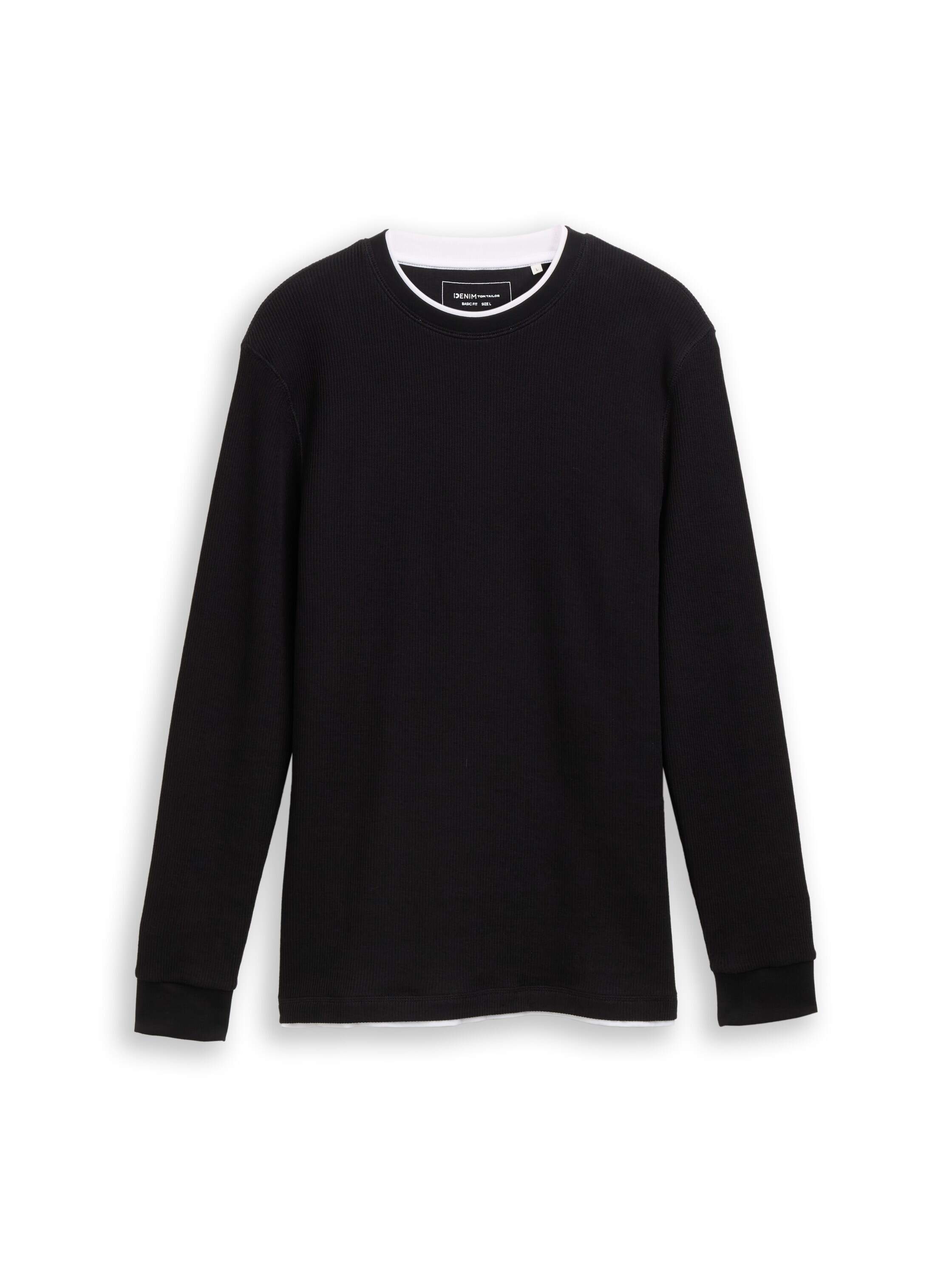 Ripp Longsleeve aus Baumwolle mit unterlegtem Jersey-Stoff am Kragen und Saum für einen 2-in-1-Look