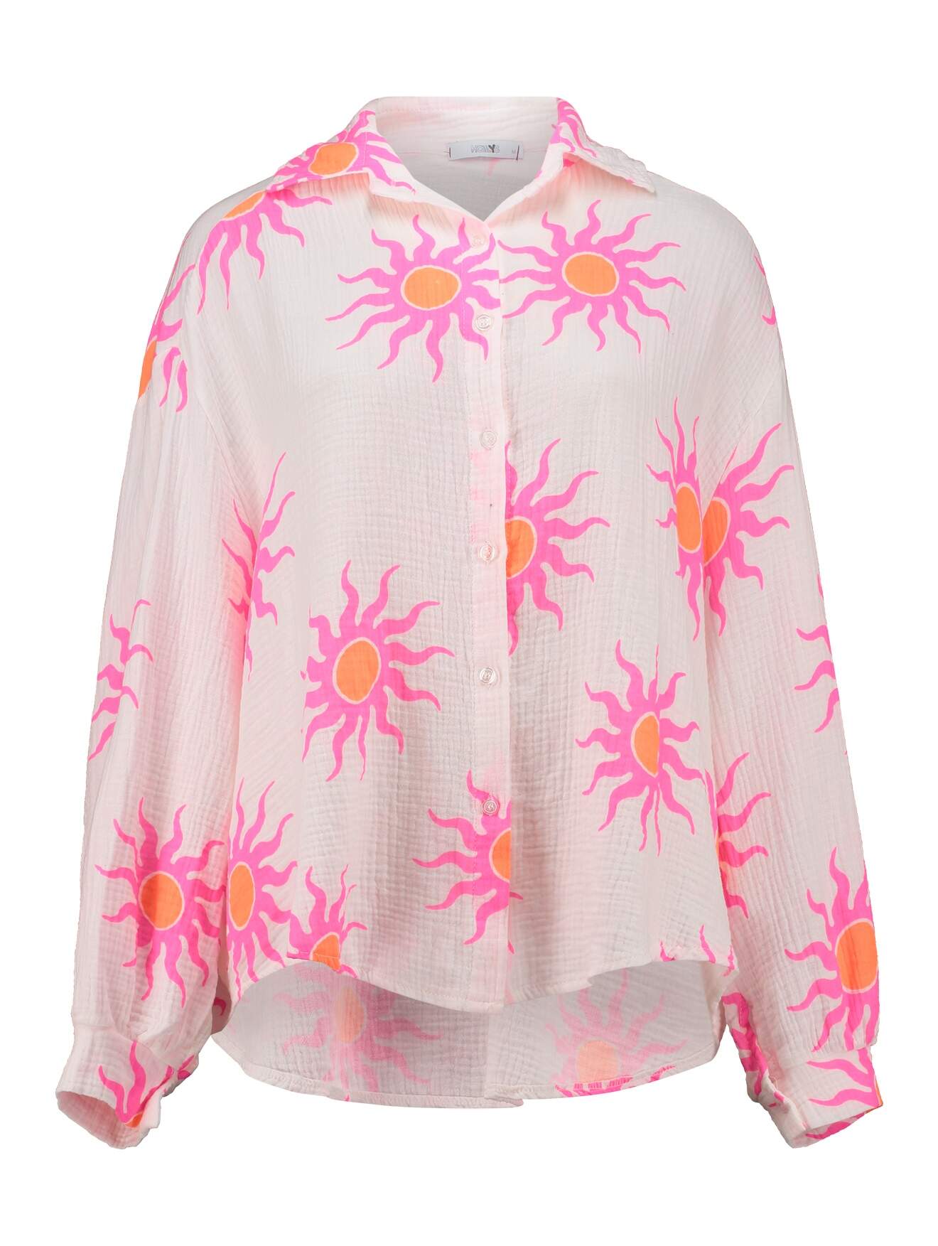 Musselin Bluse mit Print. Lange Ärmel, Kragen und durchgehende Knopfleiste.