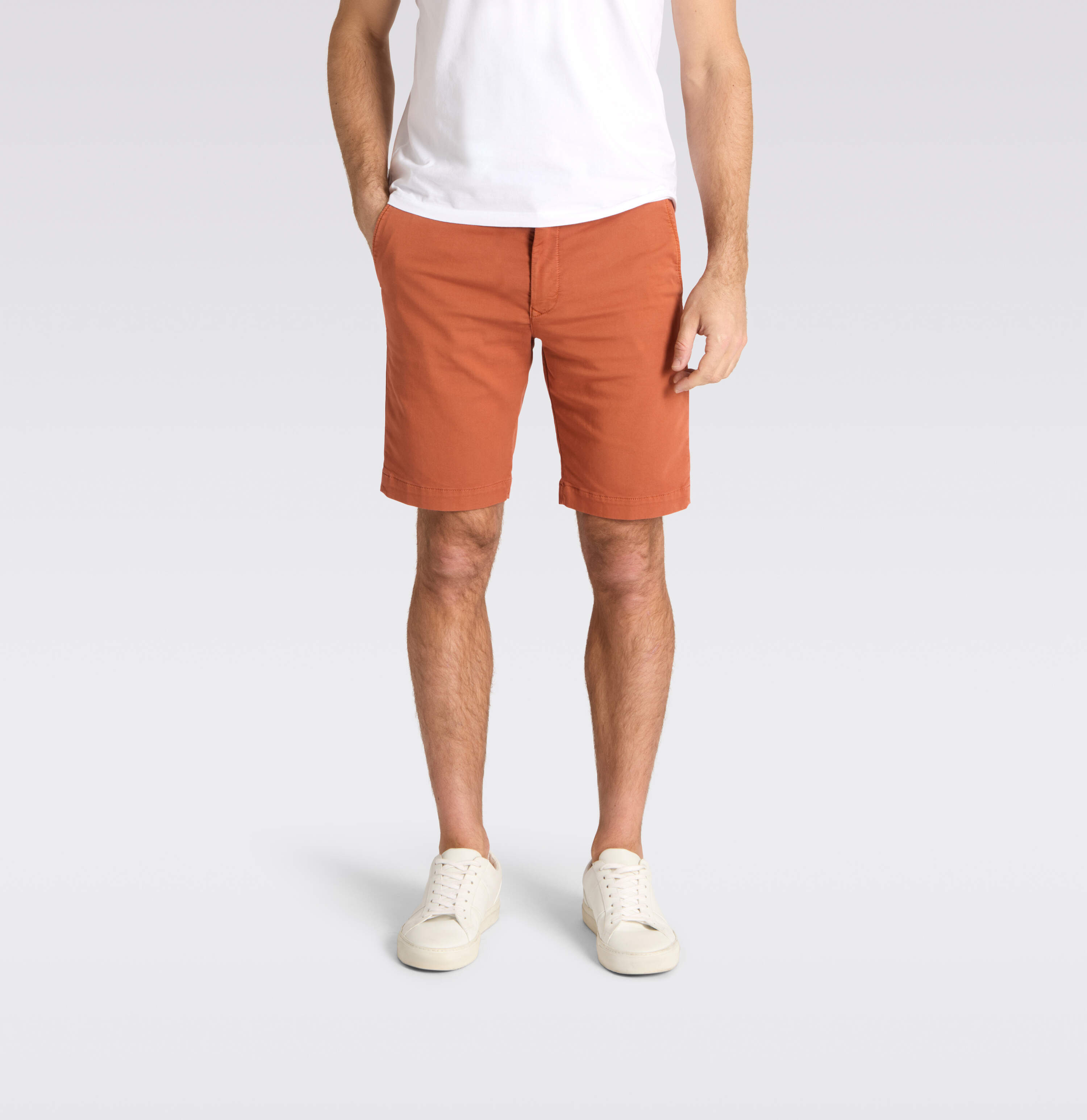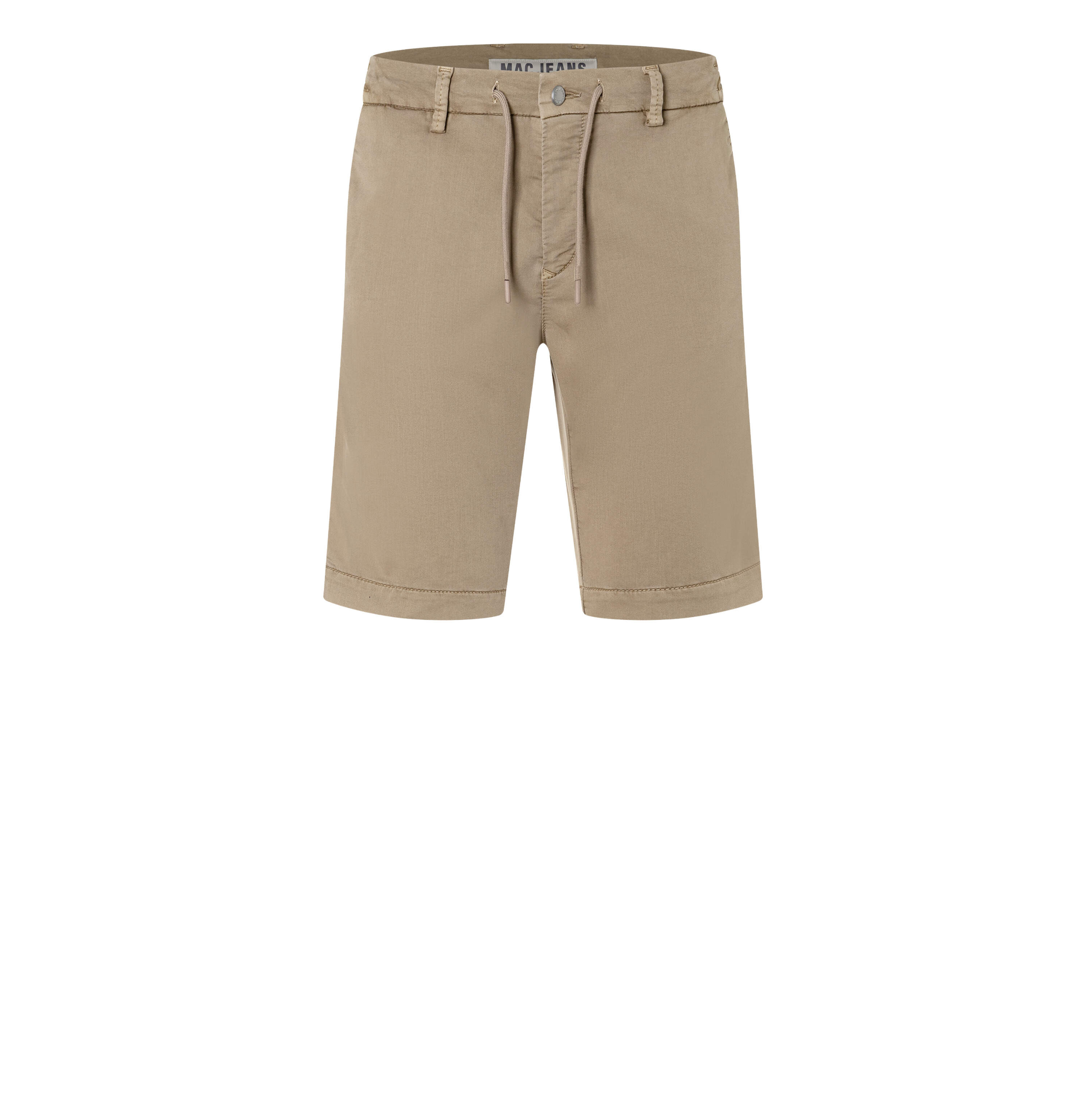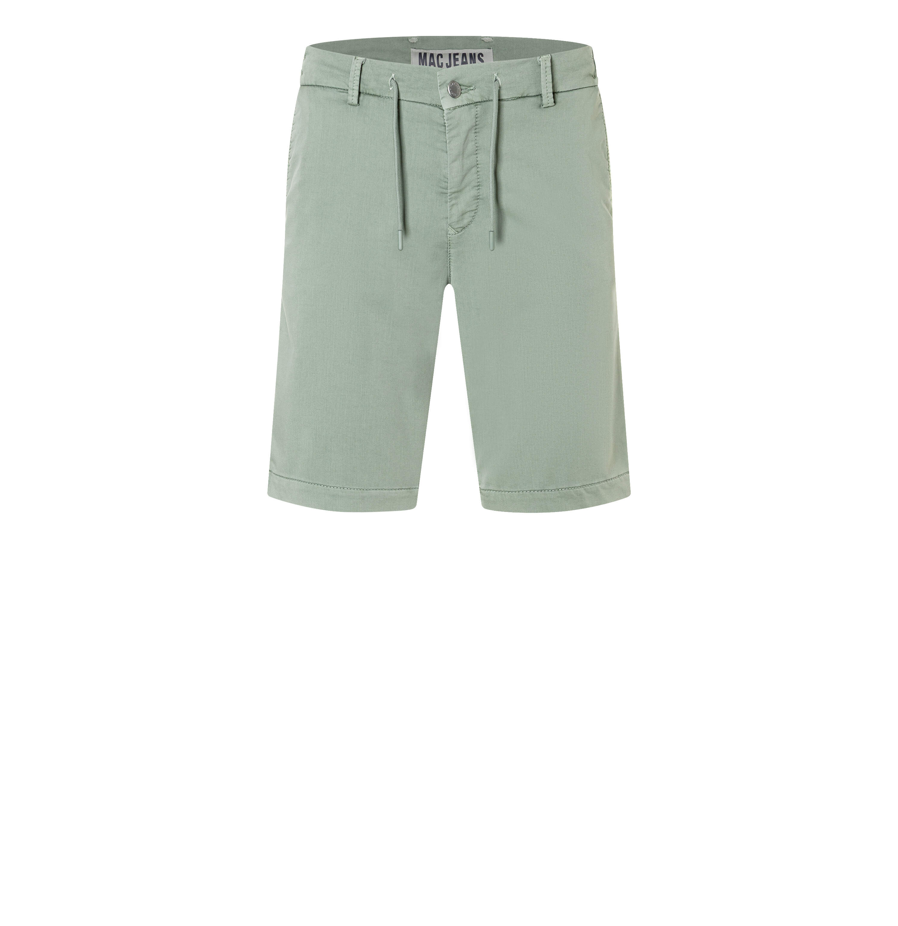 Chino Bermuda, Tapered Fit, schlanke Passform, gemäßigte, bequeme Leibhöhe, Tunnelzug am Bund, seitliche Eingrifftaschen, Paspeltaschen mit Knopf hinten, hochwertiger Sweat Denim, hoher Tragekomfort, formstabile Qualität, authentische Coloured Denim-Optik, sehr weicher Griff, sehr leicht im Gewicht, Das Model ist 1,85m groß und trägt die MAC Bundweite 33, Beinabschluss bei Größe 33: 50cm