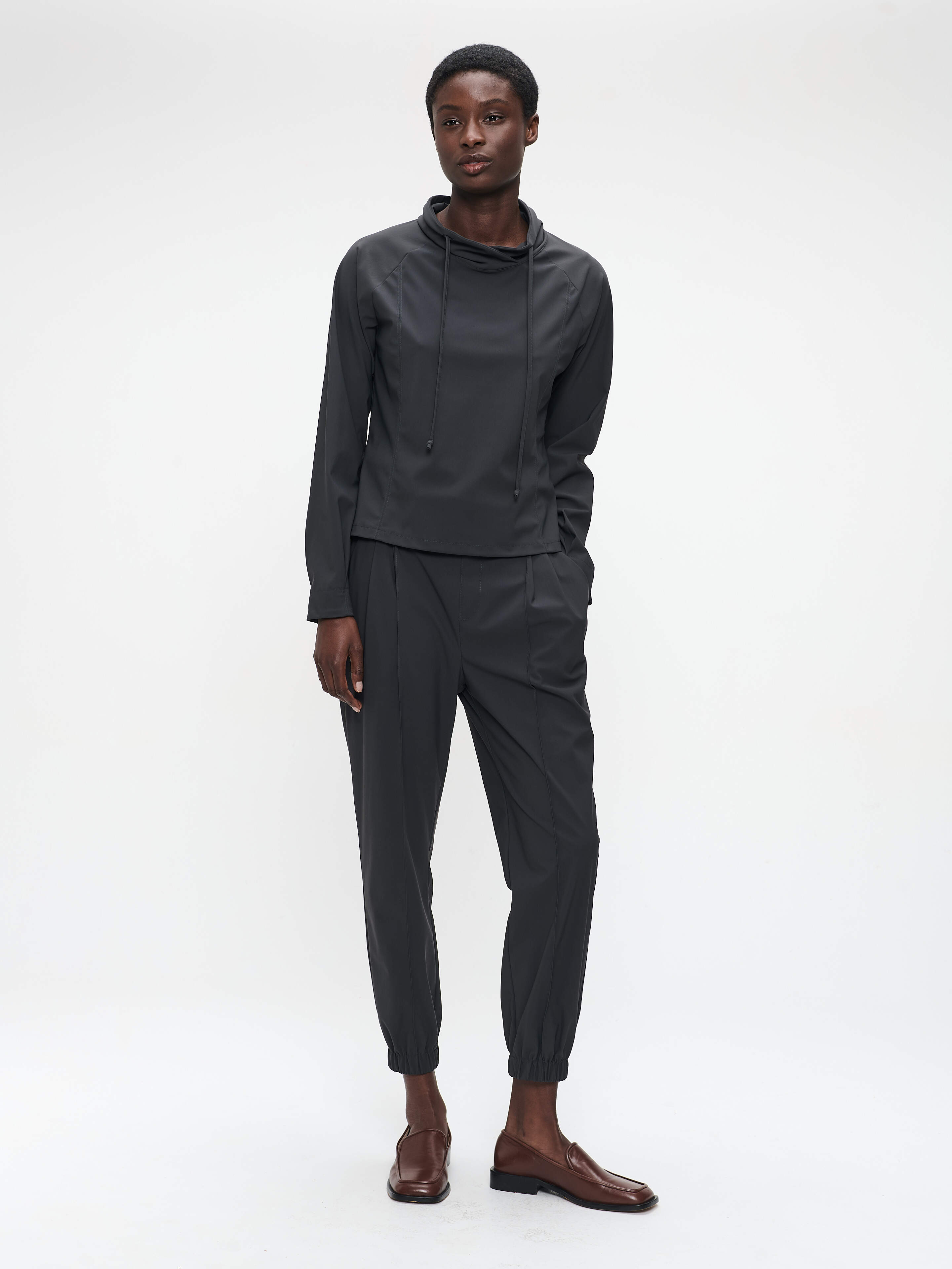 Einfach, aber schick, definiert das Maren Top sportliche Eleganz mit seiner klaren Silhouette und funktionalen Details neu. Hergestellt aus technischem Jersey für Flexibilität und Komfort, verfügt dieses Stück über einen hohen Kragen mit Kapuze und Raglanärmeln, die Bewegungsfreiheit bieten. Perfekt für aktive Tage oder legere Looks mit einem Hauch von Raffinesse.