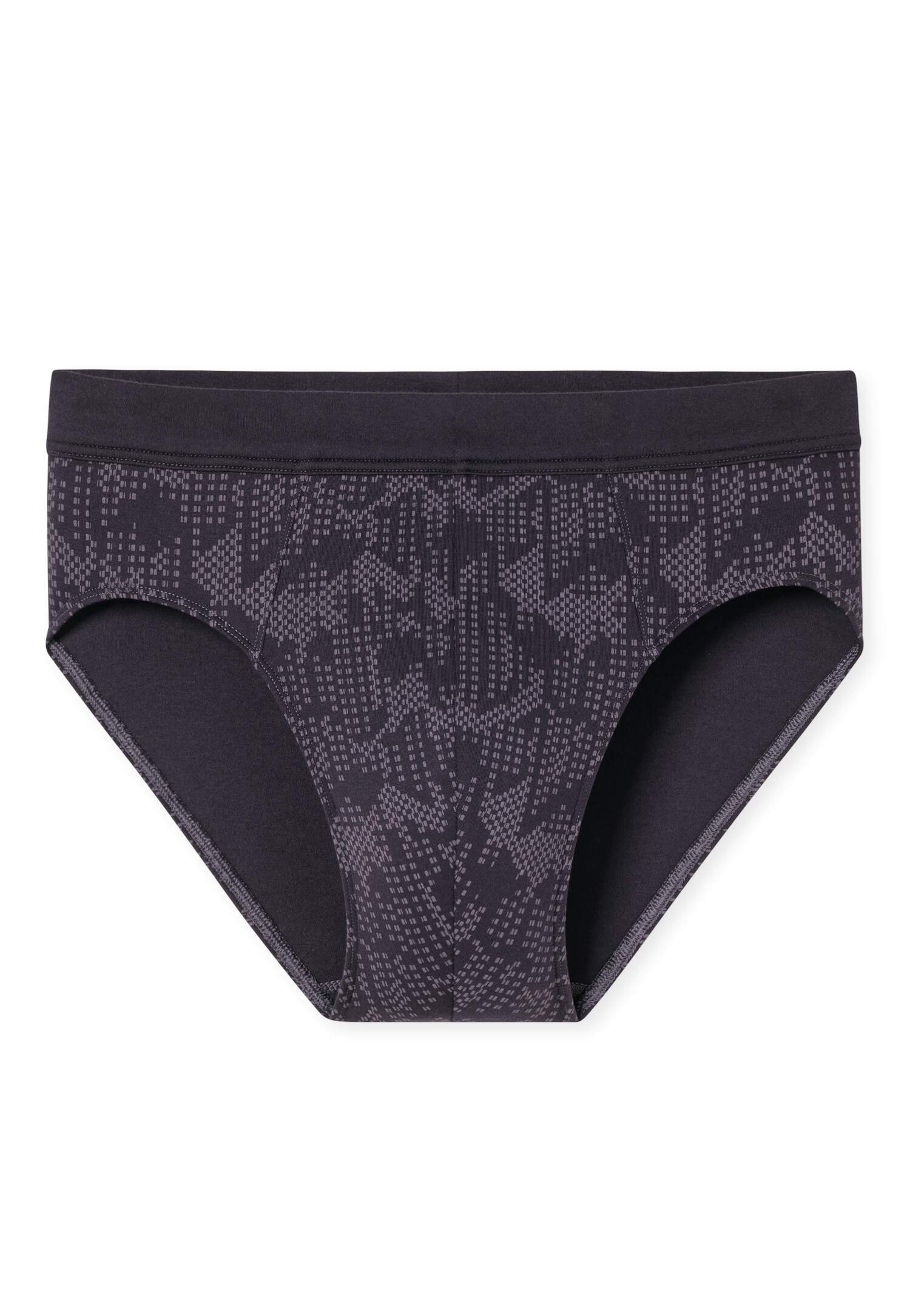 kohle-grauer Herren-Minislip mit tonalem Muster, aus der SCHIESSER Serie 'Fine Interlock', angenehm weicher Bund für hohen Tragekomfort, aus besonders strapazierfähigem, elastischem Material, unsere Models tragen Größe 50/M, in hochwertiger, angenehm weicher Interlock-Qualität mit bester Bio-Baumwolle