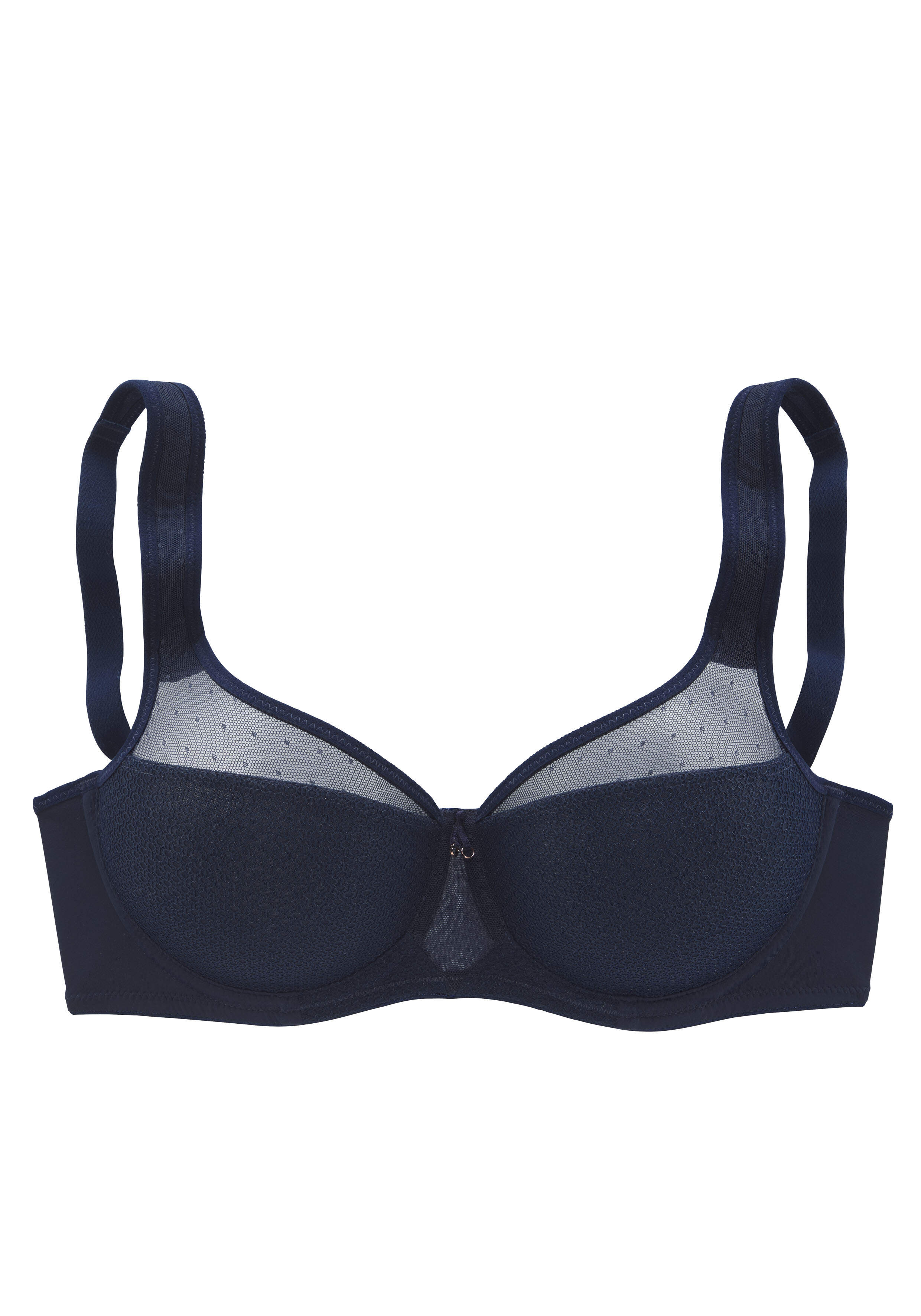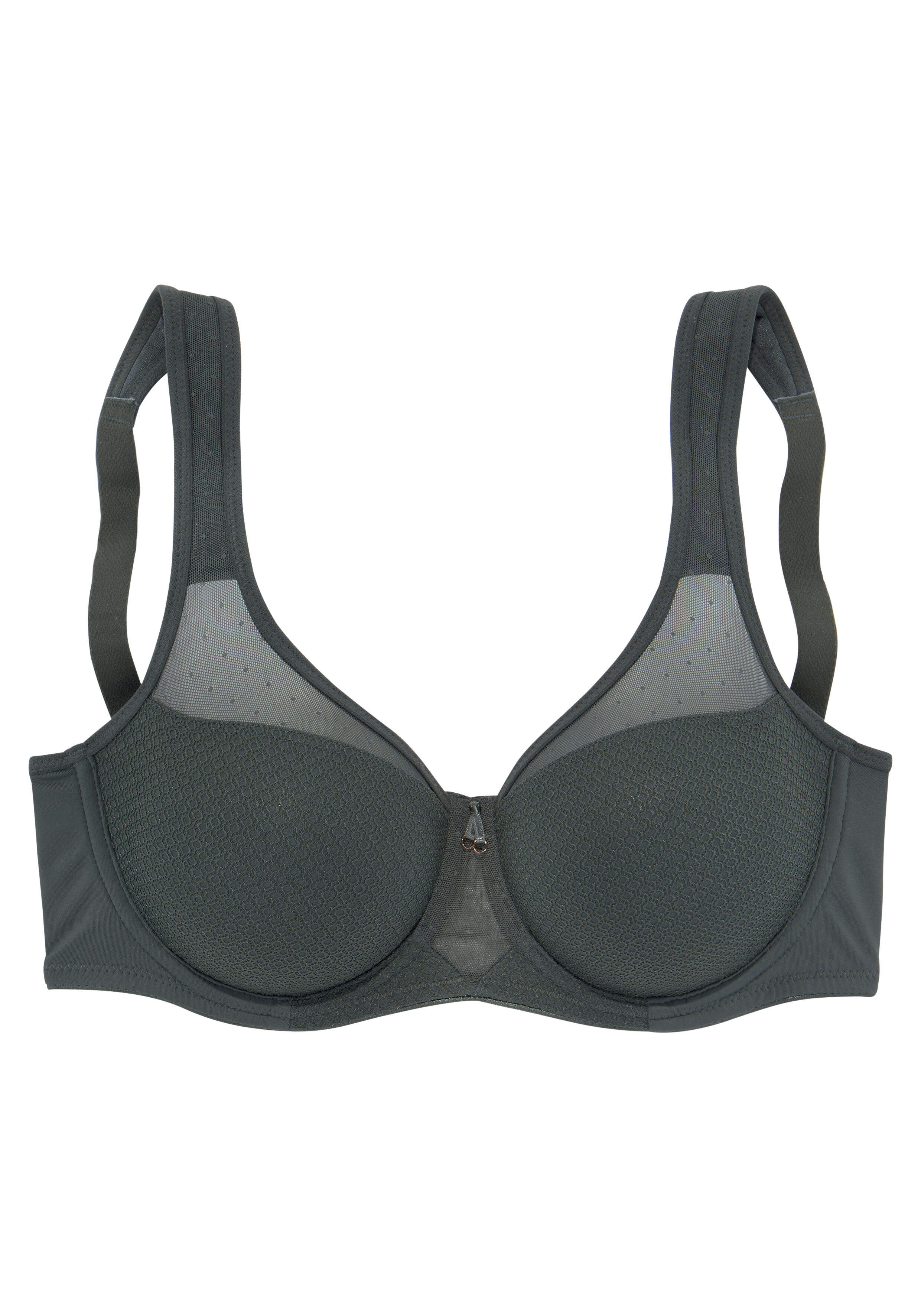 NUANCE Nuance: Minimizer-BH mit Bügel. Leicht transparente Netzeinsätze im Obercup. Nahtlos vorgeformte Cups ohne Wattierung. Durch die besondere Schnittführung wird die Büste optisch verkleinert. Träger und Rückenverschluss verstellbar. Aus 79% Polyamid, 15% Polyester, 6% Elasthan