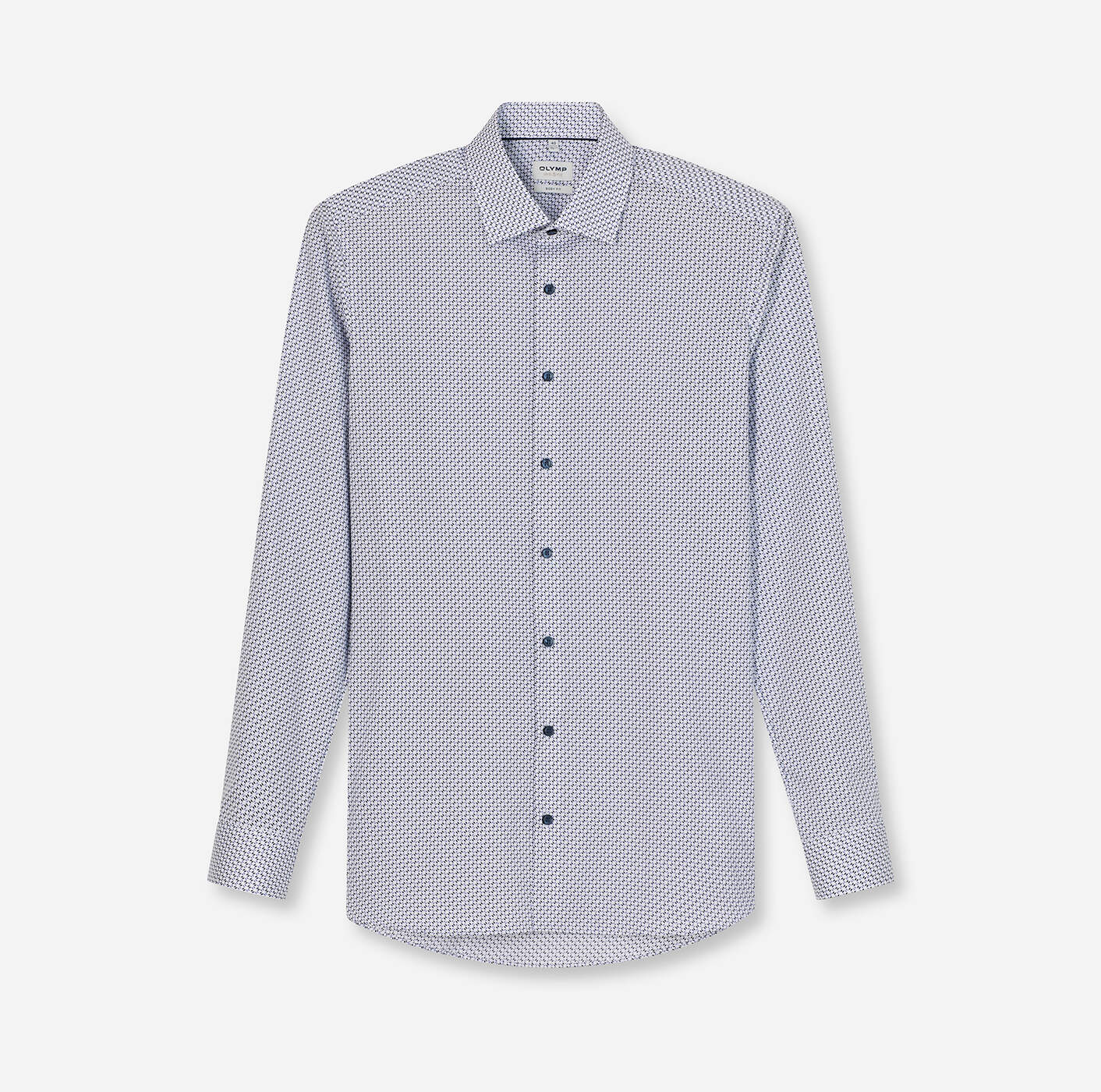 Das dezente Minimal-Dessin mit neuen Farbtönen überzeugt charmant. Entsprechend der OLYMP Level Five Linie ist das Businesshemd attraktiv körperbetont geschnitten und passend dazu mit maskulinem New York Kent ausgestattet. Der bewährte Comfort Stretch sorgt für Bewegungsfreiheit und angenehmen Tragekomfort. Besonders bügelleicht.