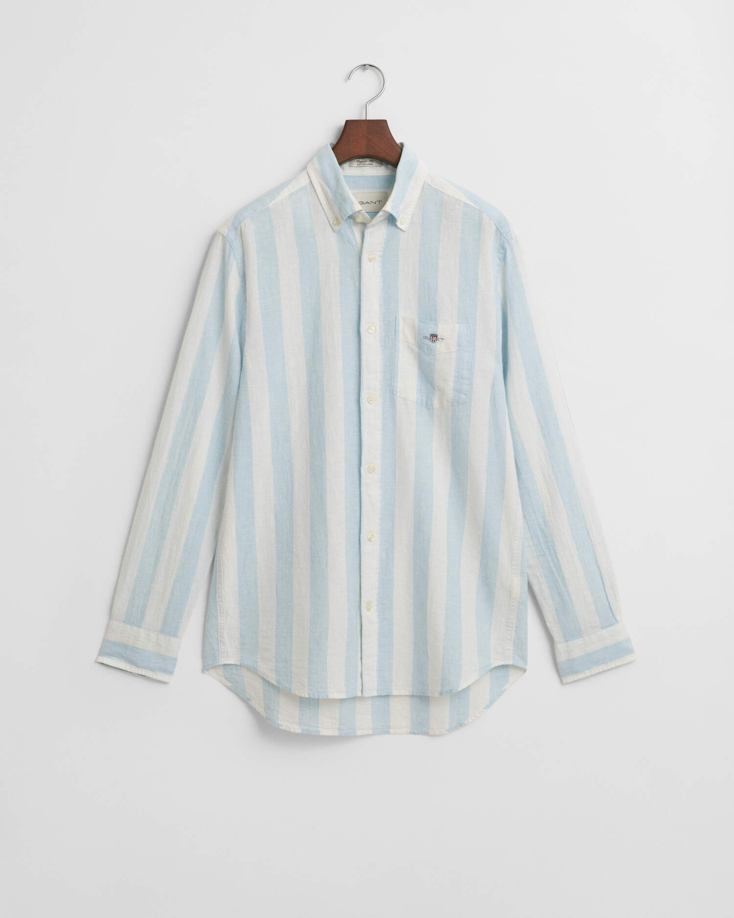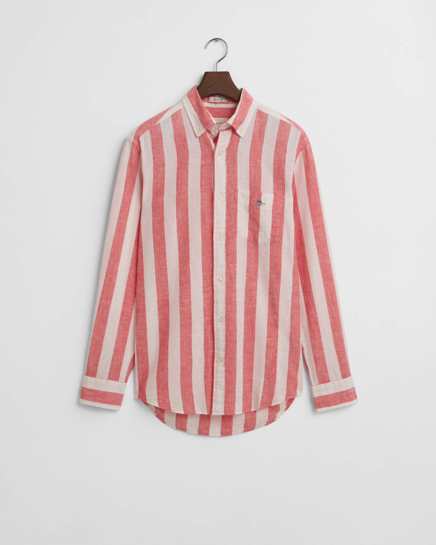 Dieses GANT Herren Hemd ist im Regular Fit aus einem adretten Leinen-Baumwoll-Gemisch gefertigt und daher leicht, luftig und atmungsaktiv. Neben auffälligen garngefärbten Streifen verfügt es über einen Button-down-Kragen, eine Brusttasche mit Wappenstickerei und einen abgerundeter Saum. Die Kellerfalte und die Locker-Loop-Schlaufe am Rücken runden das Design ab.