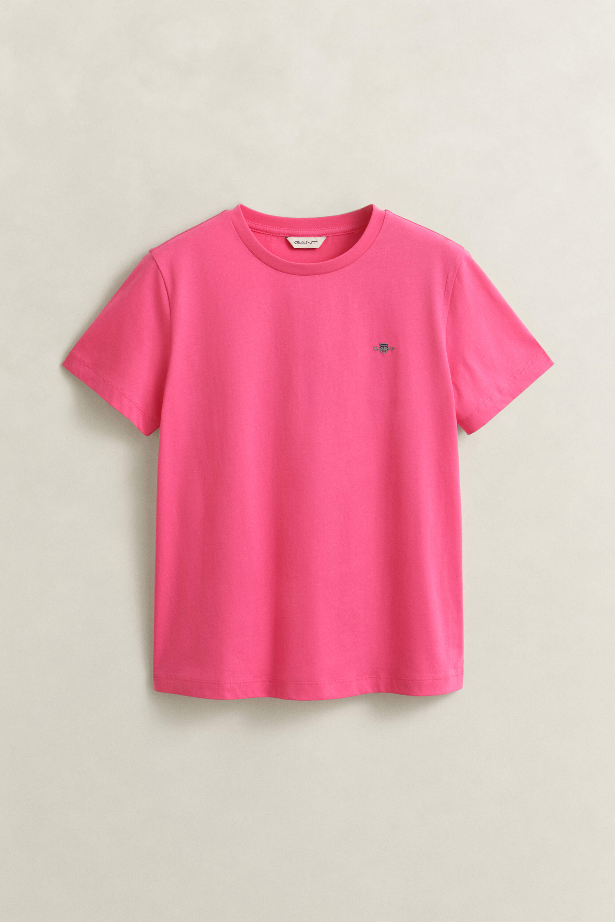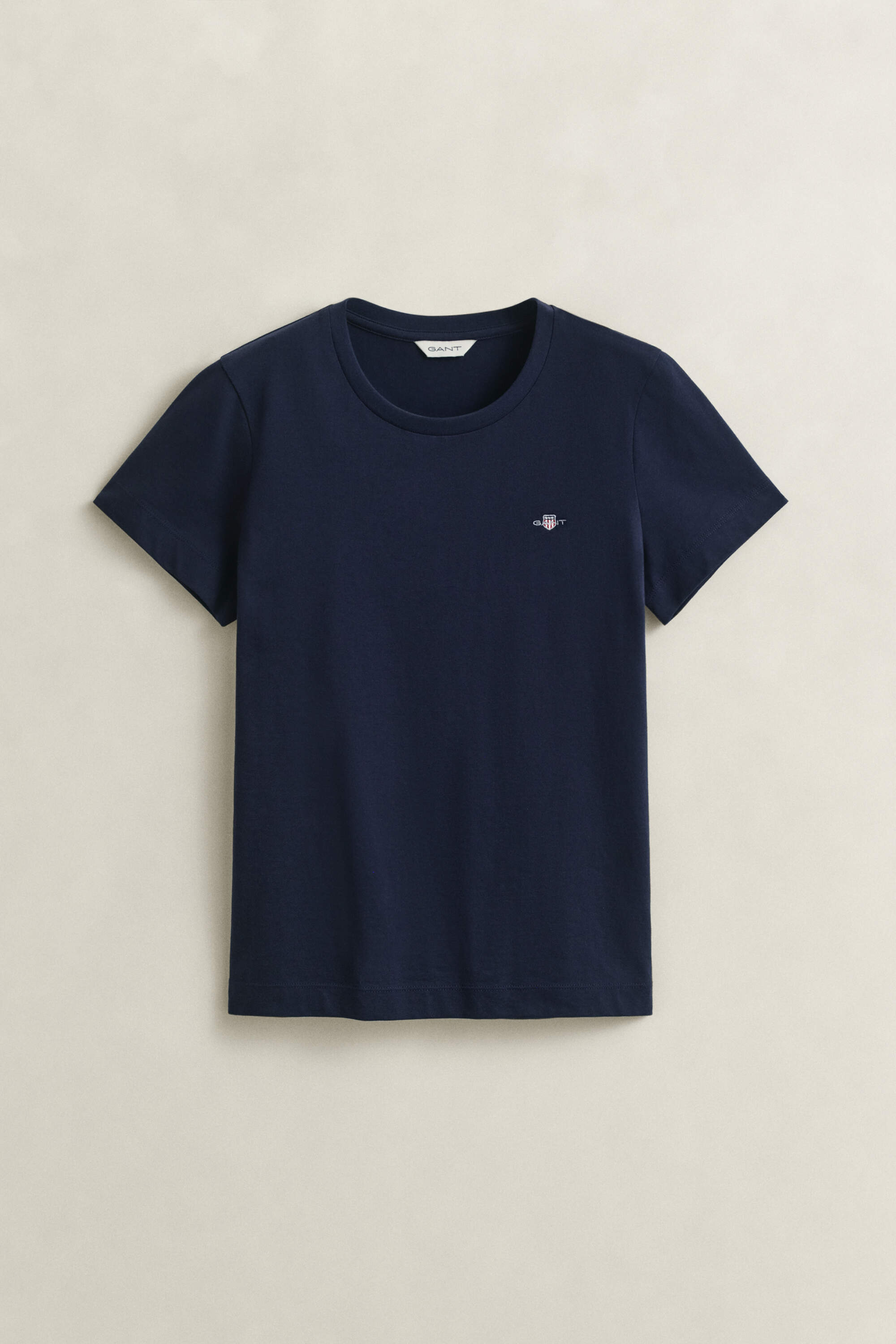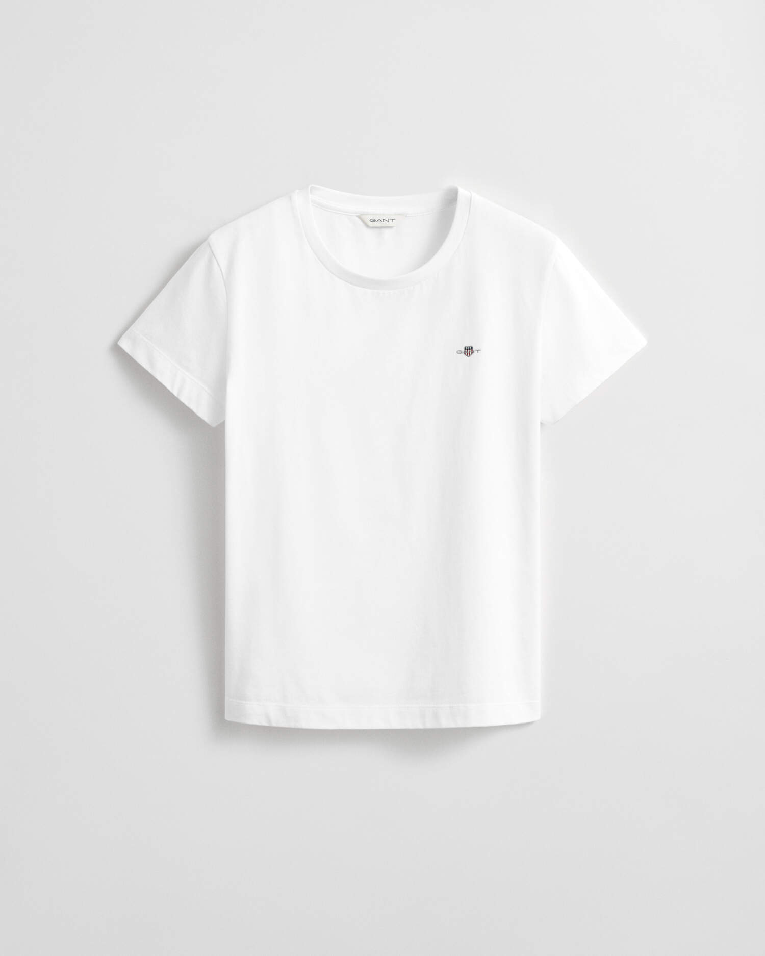 Dieses schlichtes Gant Jersey-T-Shirt für Damen hat kurze Ärmel und einen klassischen Rundhalsausschnitt. Es ist aus weicher Baumwolle gefertigt. Veredelt wird das Design durch eine kleine, aufgestickte Gant Wappengrafik auf der Brust.