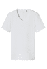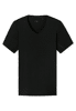 schwarzes Kurzarmshirt für Herren mit V-Ausschnitt, aus der SCHIESSER Serie 'Premium Cotton', strategisch platzierte Veredelung unter dem Arm , minimiert das Abzeichnen von Feuchtigkeit dank hydrophiler/hydrophober Veredelung, wasch- und trocknerfest, hoher Komfort dank Tamponprint und flacher Seitennähte, in hochwertiger, elastischer Single-Jersey-Qualität