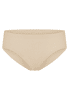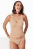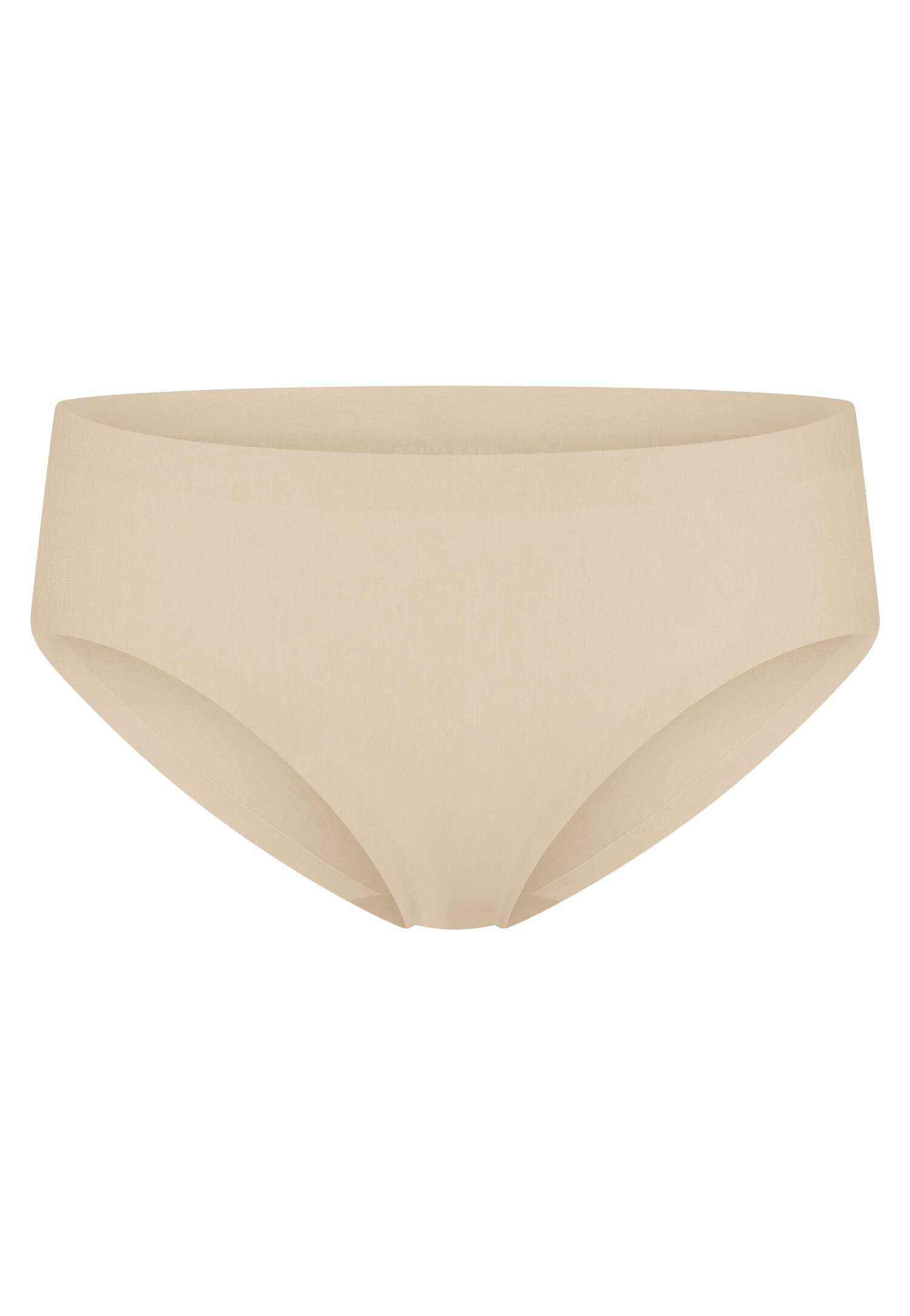 sandfarbener Seamless-Slip für Damen, aus der SCHIESSER Serie 'Invisible Cotton', aus softem, natürlichem Material mit hohem Baumwoll-Anteil, komplett nahtlos verarbeitet mit verklebten Seitennähten (unsichtbar unter eng anliegender Kleidung), samtige, weiche Innenränder für perfekten Halt und hohen Tragekomfort, unsere Models tragen Größe 38/M, in herrlich bequemer, elastischer Single-Jersey-Qualität