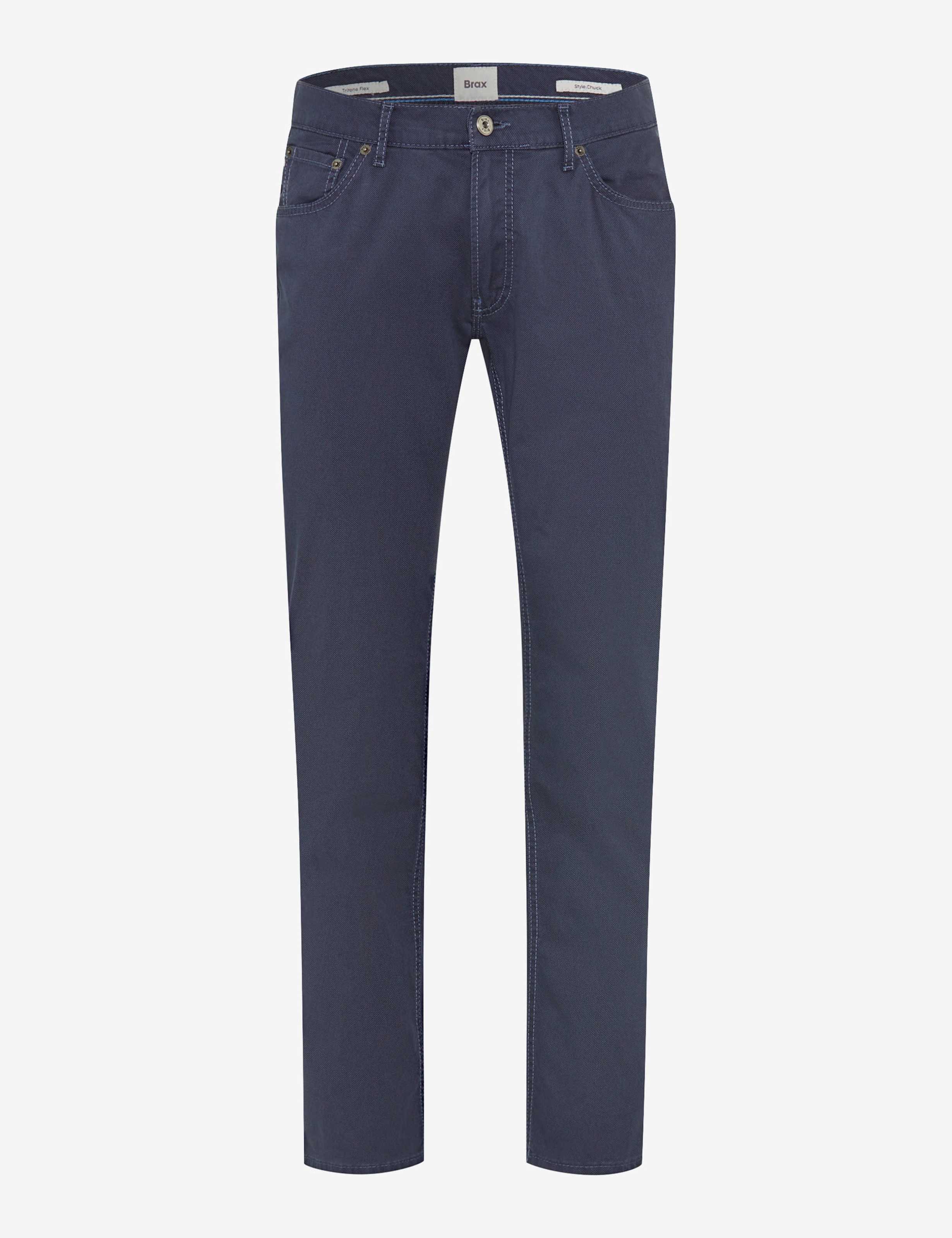 Für Herren ist der Style CHUCK ein Trend-Item. Modebewusst und smart kombinieren Sie bequeme Sneaker mit dieser Five-Pocket-Hose. Die Modern Fit Herrenhose kommt ganz lässig mit regulärer Bundhöhe und schlankem Schnitt. Eine ansprechende Optik erhält die Hose insbesondere durch das aufwendige Taschendesign. Zusätzlich ist sie mit Kunstlederbesatz und Ziernieten ausgestattet. Movement without limits: Die extrem elastischen Hi-Flex-Fasern garantieren Ihnen durch High Stretch unendliche Bewegungsfreiheit - exclusive by BRAX. Durch die aufgebrochene Körperbindung entsteht darüber hinaus der robuste Broken Twill mit interessanter Struktur. Der unempfindliche und hautfreundliche Baumwollmix bietet außerdem bei dieser Five-Pocket-Hose ein einwandfreies Tragegefühl.