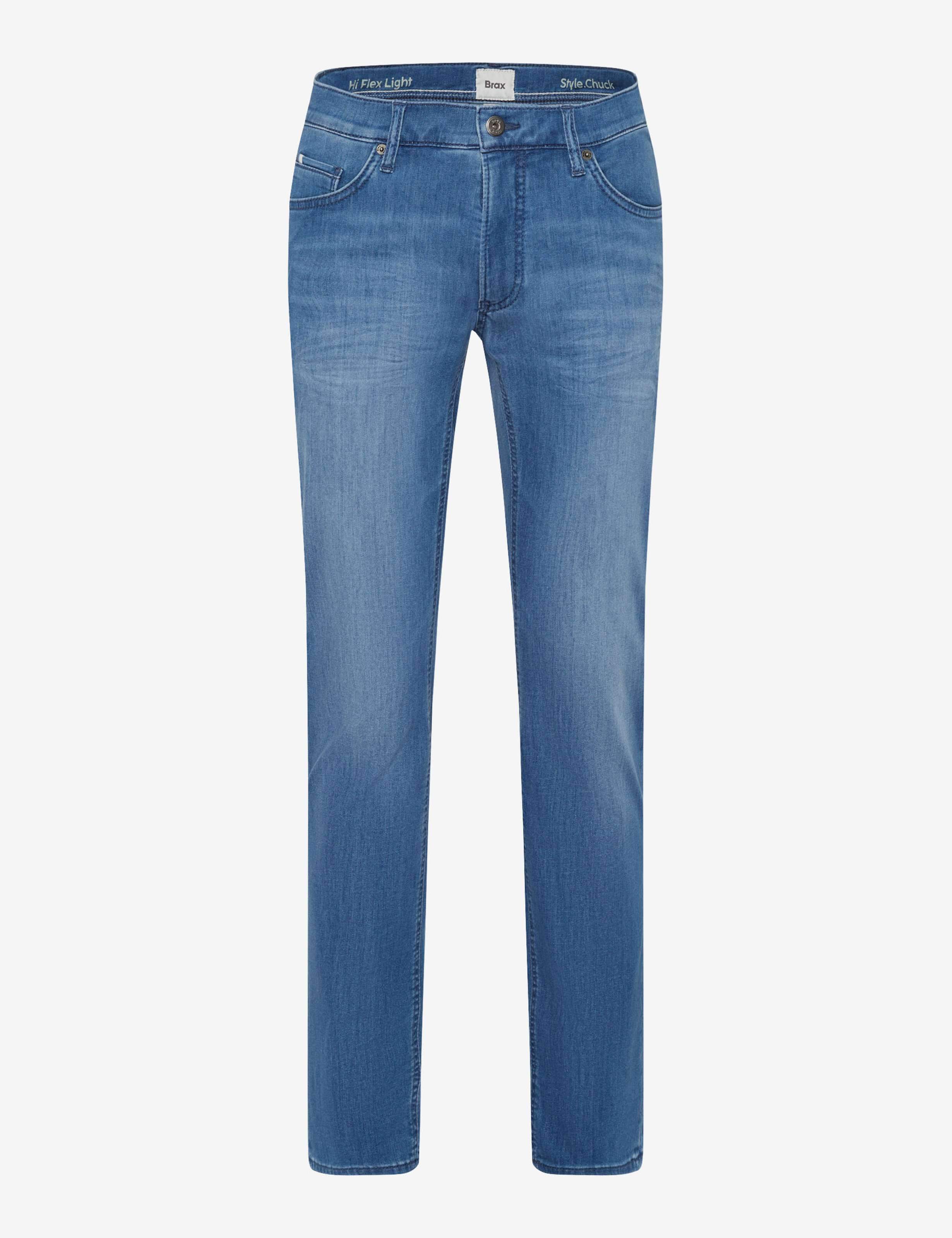 Der Style CHUCK ist ein Trend-Item für Herren. Kreieren Sie Ihren modebewussten Auftritt mit dieser Five-Pocket-Jeans in Kombination mit sommerlichen Sweats und Sneakern. Die Modern Fit Herrenhose ist modisch und vielseitig mit gerader Passform und regulärer Leibhöhe. Eine bewährte Optik erhält die Hose insbesondere durch das aufwendige Taschendesign. Zusätzlich ist sie mit markanten Used-Effekten gefertigt. Movement without limits: Die extrem elastischen Hi-Flex-Fasern garantieren Ihnen durch High Stretch unendliche Bewegungsfreiheit - exclusive by Brax. Unique und authentisch steht der Denim für hohe Strapazierfähigkeit. Simpel aber effektvoll ist das charakteristische Finish. Der unempfindliche und hautfreundliche Baumwollmix bietet zudem bei dieser Five-Pocket-Jeans ein erstklassiges Tragegefühl.