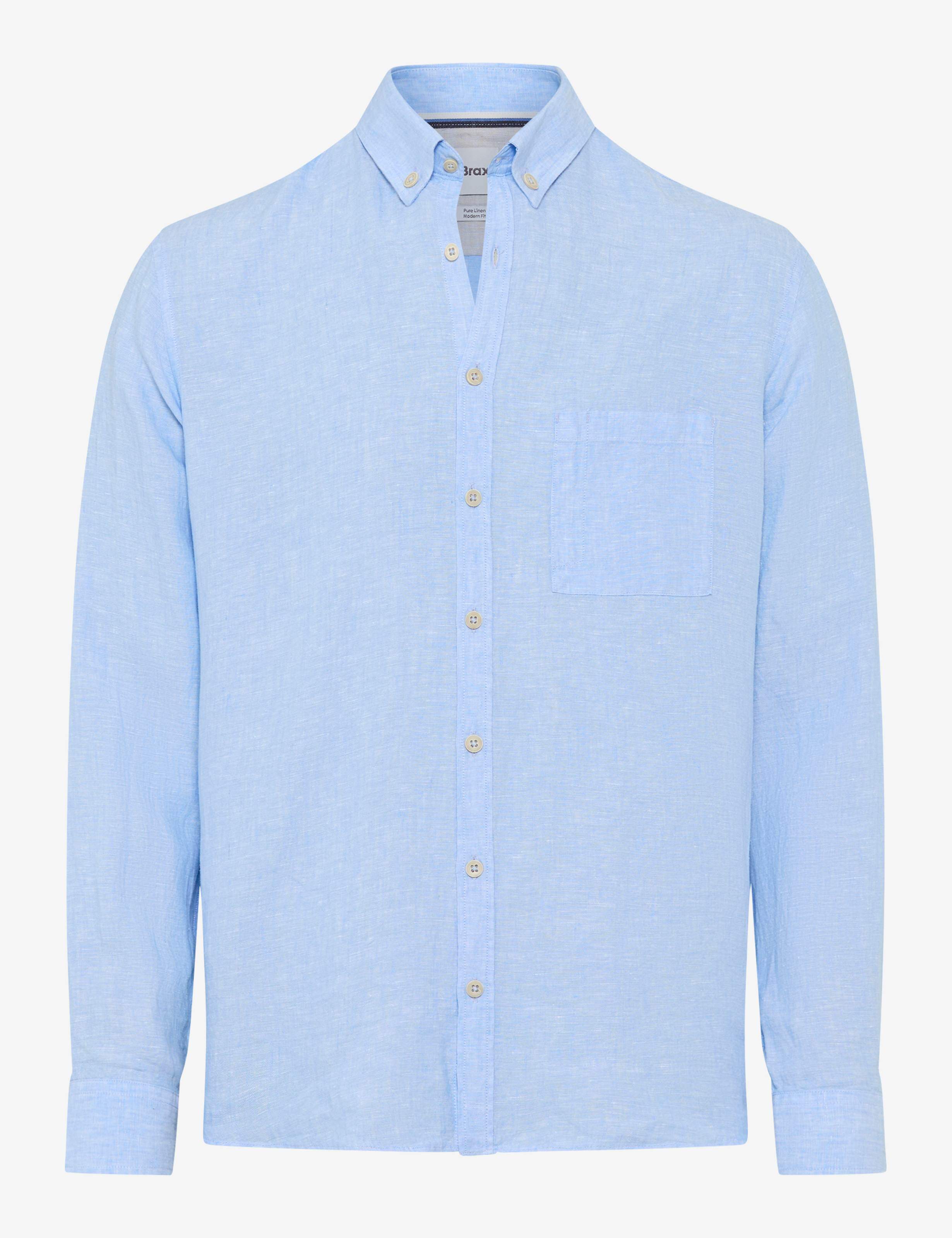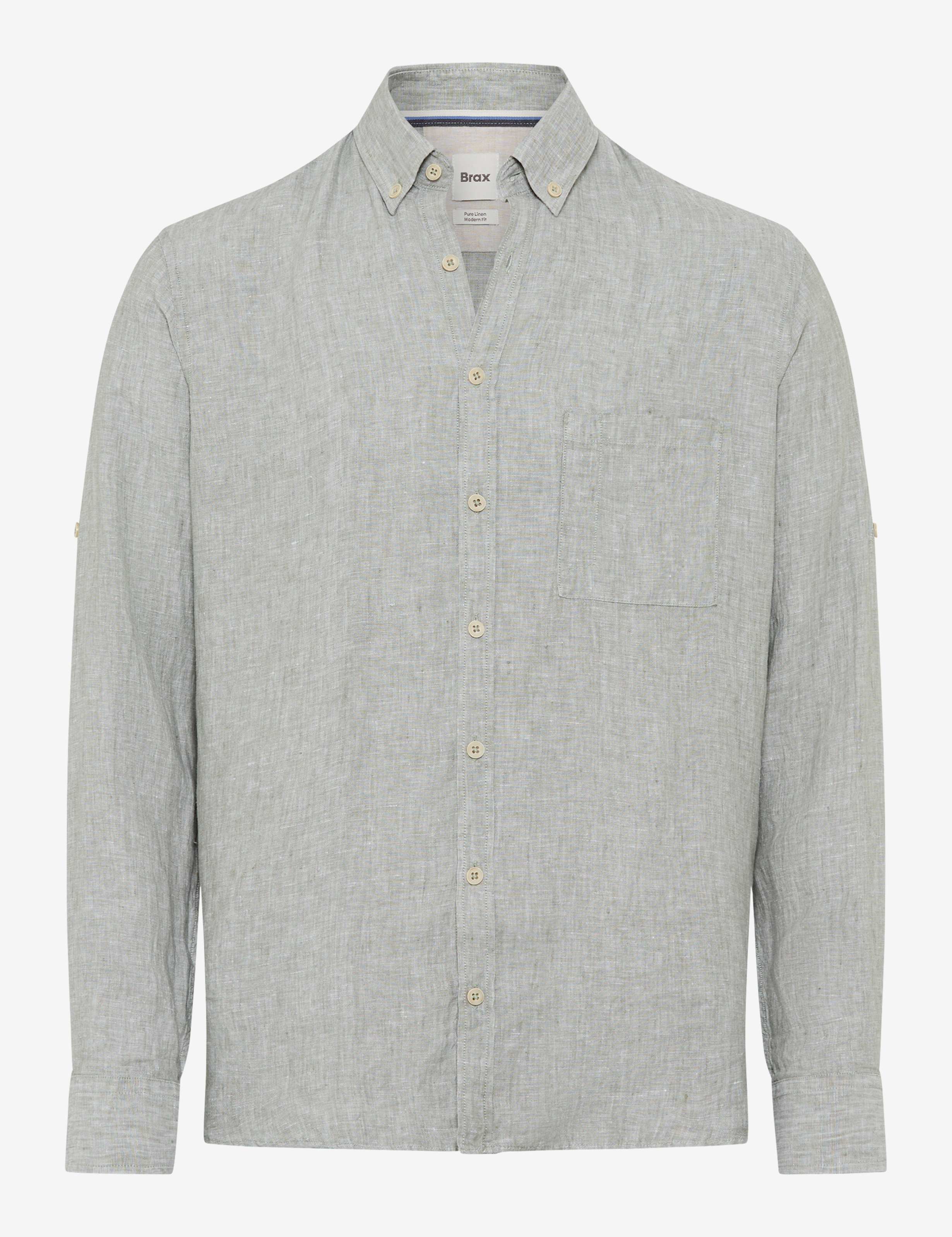 Eine stilvolle Wahl für warme Tage – das Herrenhemd im Style DIRK verbindet klassische Elemente mit einem modernen Look. Die leicht taillierte Silhouette, der sportive Button-Down-Kragen und eine aufgesetzte Brusttasche verleihen dem Langarmhemd eine smarte Lässigkeit. Sein minimalistischer Stil lebt von der feinen Struktur des Stoffes, die dem unifarbenen Hemd eine dezente, edle Tiefe verleiht. Mit seiner cleanen Optik empfiehlt sich das Leinenhemd als vielseitiges Essential, das sich mühelos mit Chinos oder leichten Five-Pocket-Jeans kombinieren lässt. Seine sommerliche Leichtigkeit verdankt das Hemd dem Material. Reines Leinen überzeugt mit natürlicher Atmungsaktivität, angenehmer Haptik und kühlendem Tragekomfort.