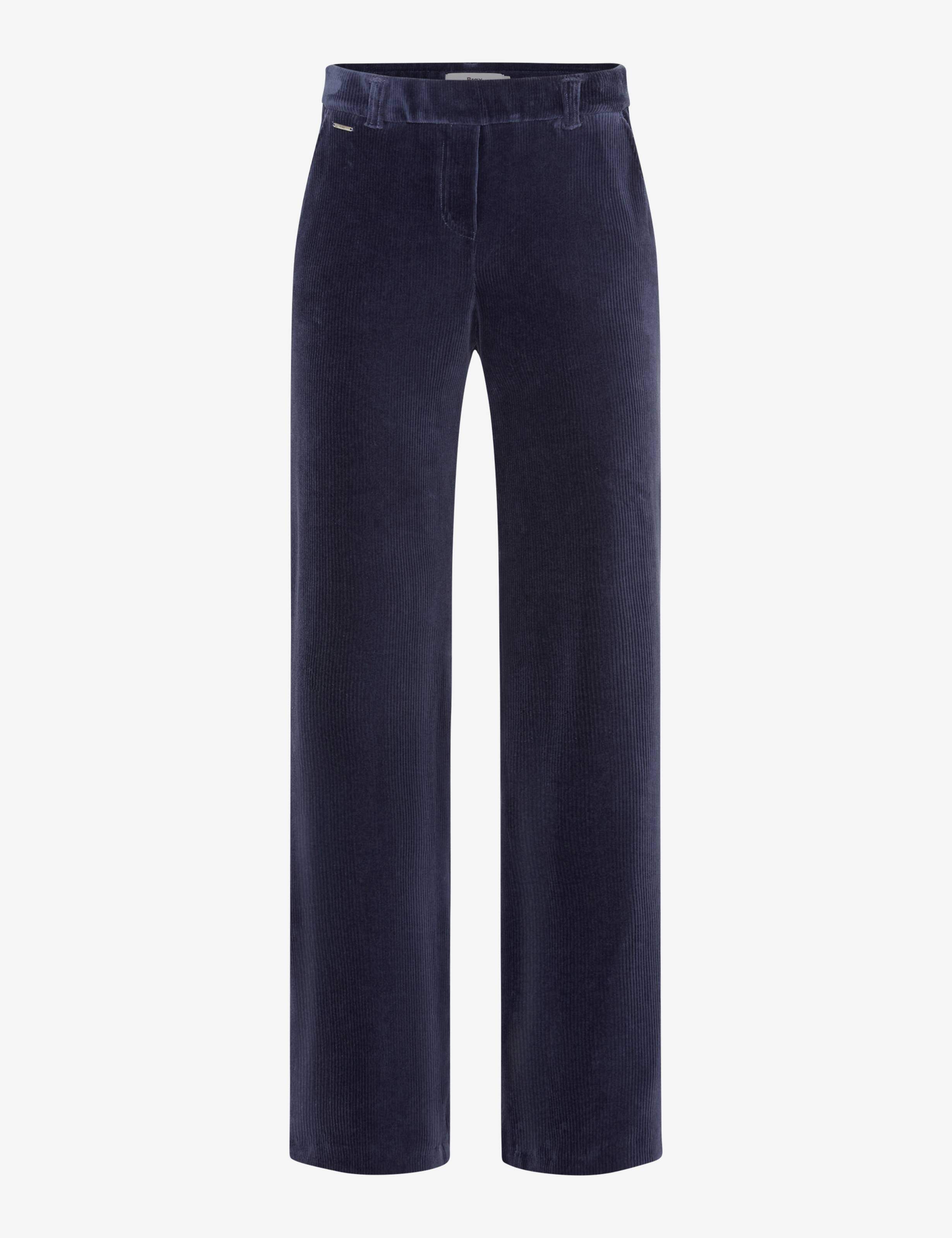 Die Palazzohose im Style MAINE bringt in der kühlen Jahreszeit einen Hauch von Eleganz in die Damenmode und überzeugt mit einer entspannten, modernen Ausstrahlung. Ihr weiter, fließender Schnitt in Kombination mit einer normalen Leibhöhe und flacher Front sorgt für eine klare, feminine Linie, während der elastische Bund und die seitlich eingesetzten französischen Taschen eine komfortable und zugleich stilvolle Note verleihen. Das Material aus hochwertigem Baumwollmix bietet ein angenehmes Tragegefühl und verbindet Strapazierfähigkeit mit geschmeidiger Flexibilität. Besonderes Highlight ist der Jersey-Cord, der die markante Rippenstruktur des Cordstoffs mit der weichen, elastischen Qualität von Jersey vereint und dadurch wärmend, farbintensiv und komfortabel wirkt. Mit diesem Trend-Piece entsteht eine Hose, die modernes Design und hohen Tragekomfort harmonisch verbindet und die ideale Wahl für modische Auftritte in Herbst und Winter ist.