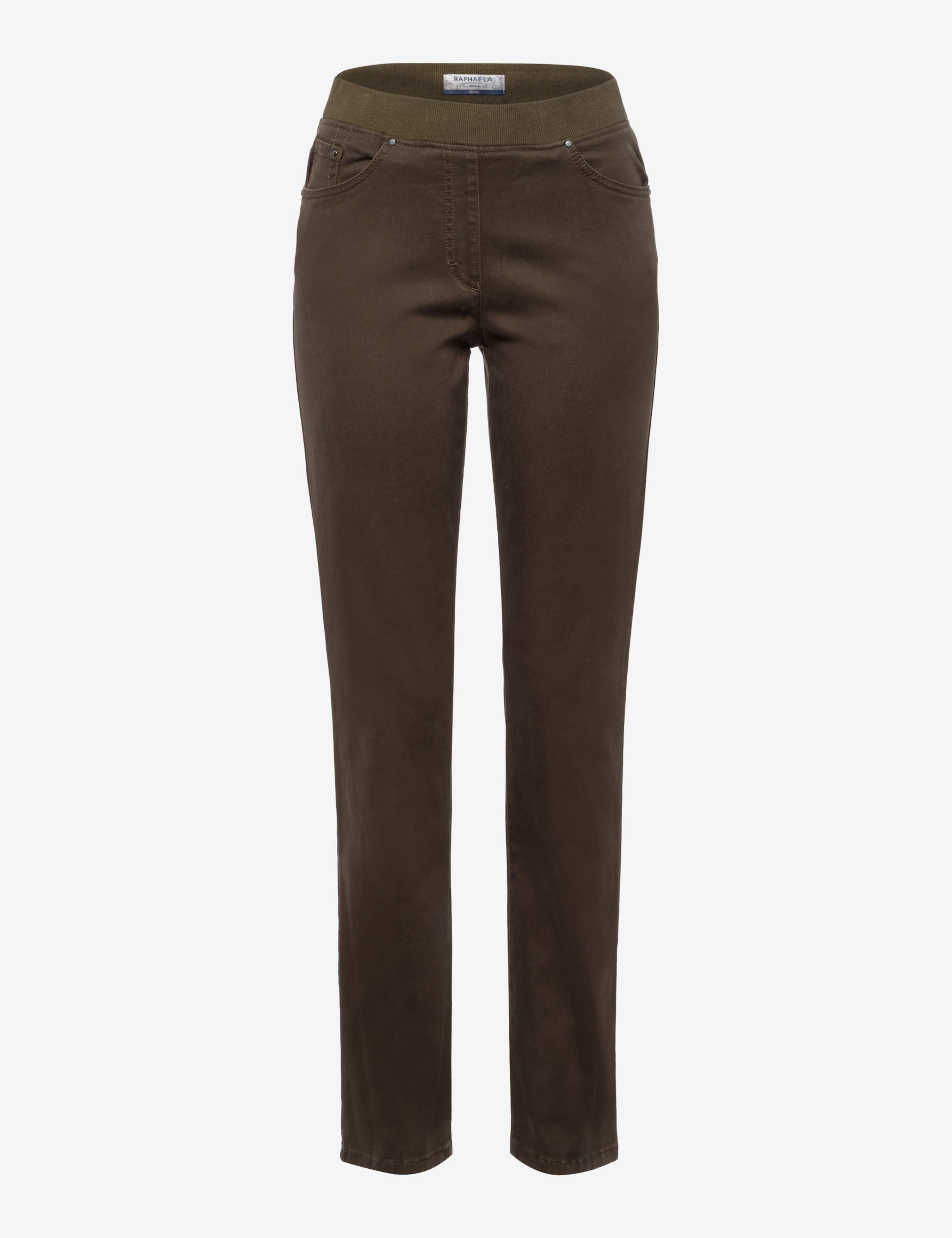 Der Style PAMINA von Raphaela ist ein Lieblingsstück für Damen. Vielseitig und zugleich bequem sorgt diese Schlupfhose für einen smarten Look. Die Slim Fit Damenhose mit hoher Taille ist schlank geschnitten und sitzt figurschmeichelnd am Bein. Unkompliziert ergänzt mit formschönem Jerseybund - einfach reinschlüpfen und gut aussehen. Durch die aufgesetzten Gesäßtaschen erhält die Hose eine sportliche Note. Zusätzlich ist sie mit dekorativen Swarovski-Elementen verziert. Für luxuriösen Glanz mit softer Haptik steht Satin. Die Atlasbindung kennzeichnet das charakteristische Gewebe. Bei dieser Schlupfhose bietet der unempfindliche und hautsympathische Baumwollmix zudem ein vorzügliches Tragegefühl.