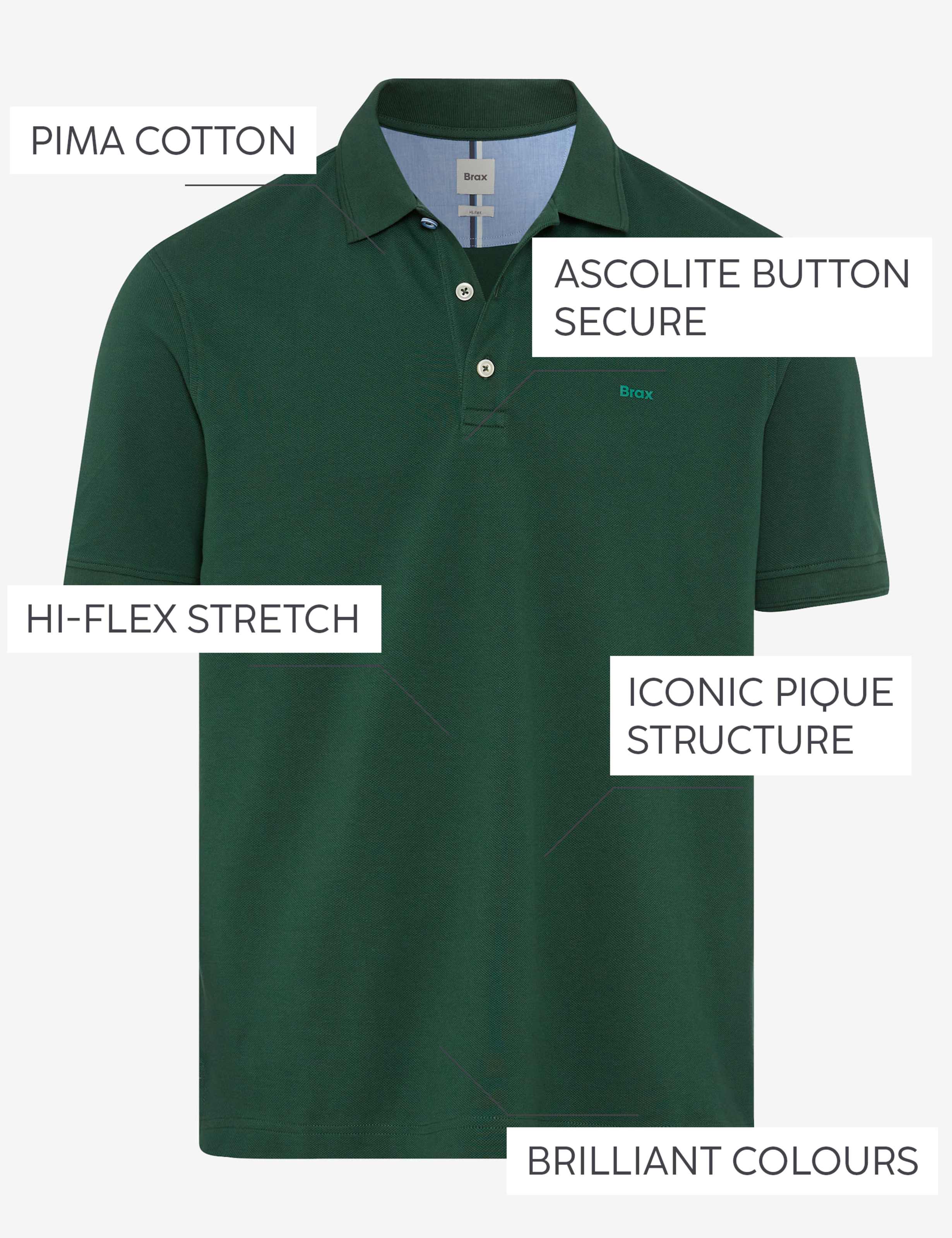 Das Poloshirt im Style Pete ist der perfekte Begleiter für den Frühling – zeitlos, lässig und mit durchdachten Details ausgestattet. Die gerade Passform sorgt für einen bequemen Sitz, während die klassische Knopfleiste mit Polokragen dem Look eine typisch sportive Note verleiht. Das Besondere hierbei ist das Ascolite © Garn zur Knopfsicherung: Knöpfe können nicht mehr abfallen. Das gefällt - genau wie die umfangreiche Farbpalette, die für jeden Mann seine Lieblingsfarbe bereithält. Gefertigt in einer Piqué-Qualität aus einem hochwertigen Pima Baumwolle-Mix bietet das Shirt ein angenehm weiches Tragegefühl, ausgezeichnete Farbbrillanz und hohe Strapazierfähigkeit. Dank der innovativen Hi-FLEX-Technologie genießen Sie zudem maximale Elastizität und Formstabilität – für höchsten Komfort und eine mühelose, stilvolle Ausstrahlung.