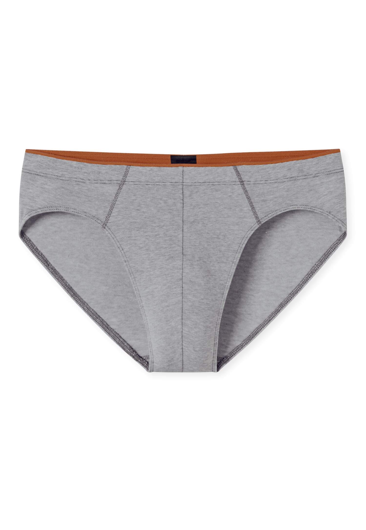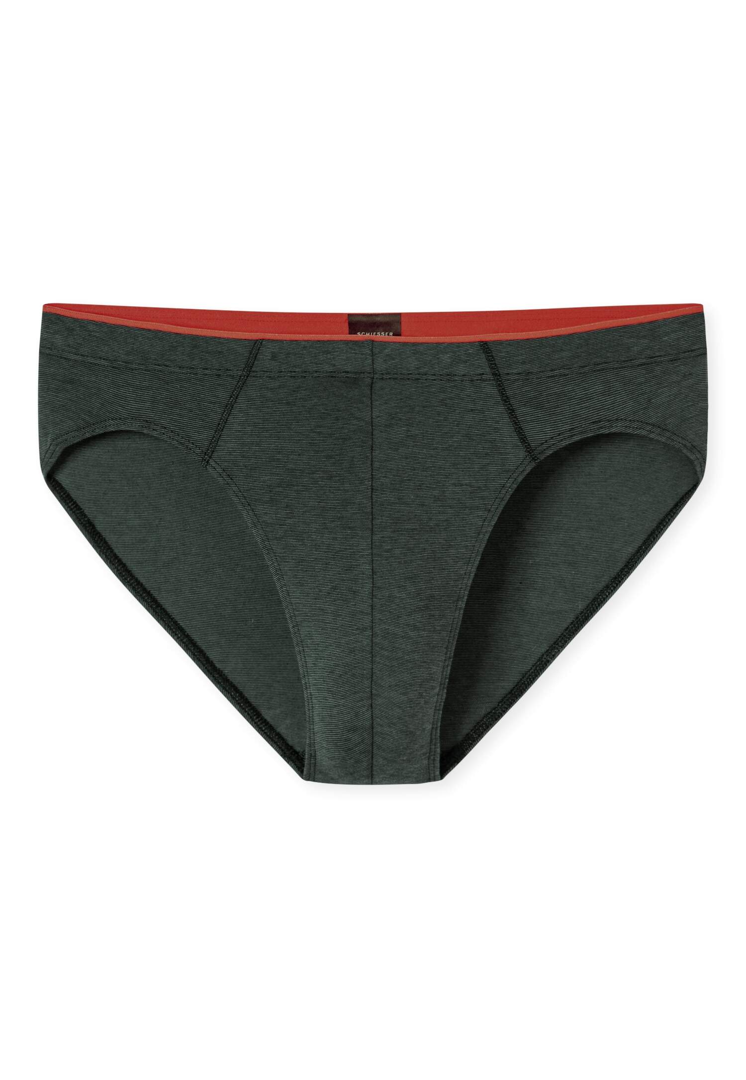 grüner Supermini Slip für Herren mit dezentem Muster und Innenbund in Braun, aus der beliebten SCHIESSER Serie '95/5', weicher, innen liegender Webgummibund mit sichtbarer Kante am Bundabschluss, Komfort und ein angenehmes Tragegefühl dank innovativer Bonding-Technologie, unsere Models tragen Größe 50/M, in perfekt sitzender, elastischer Single-Jersey-Qualität