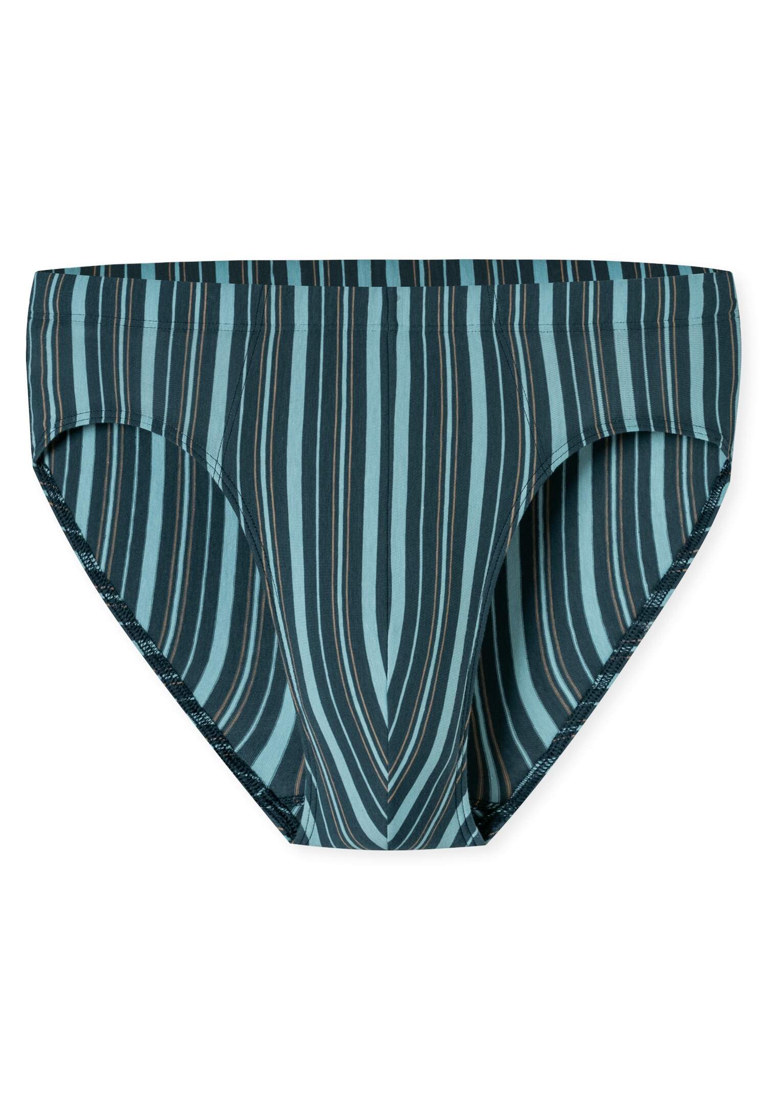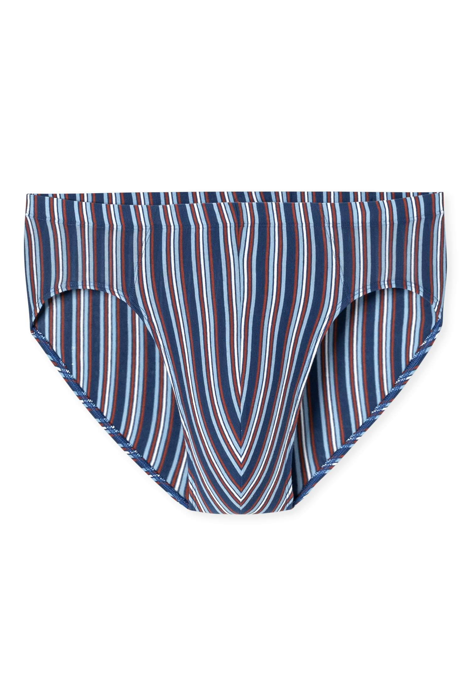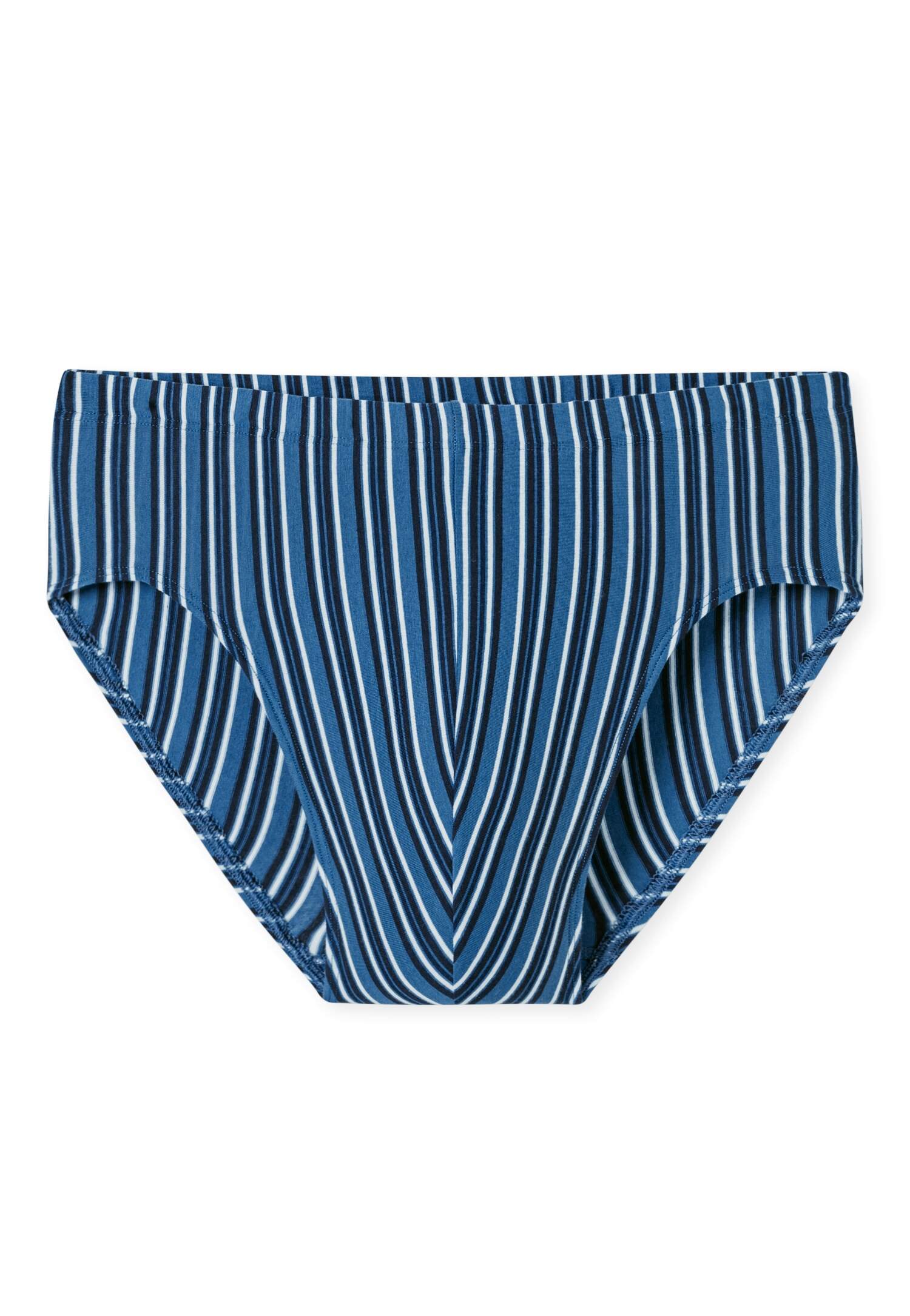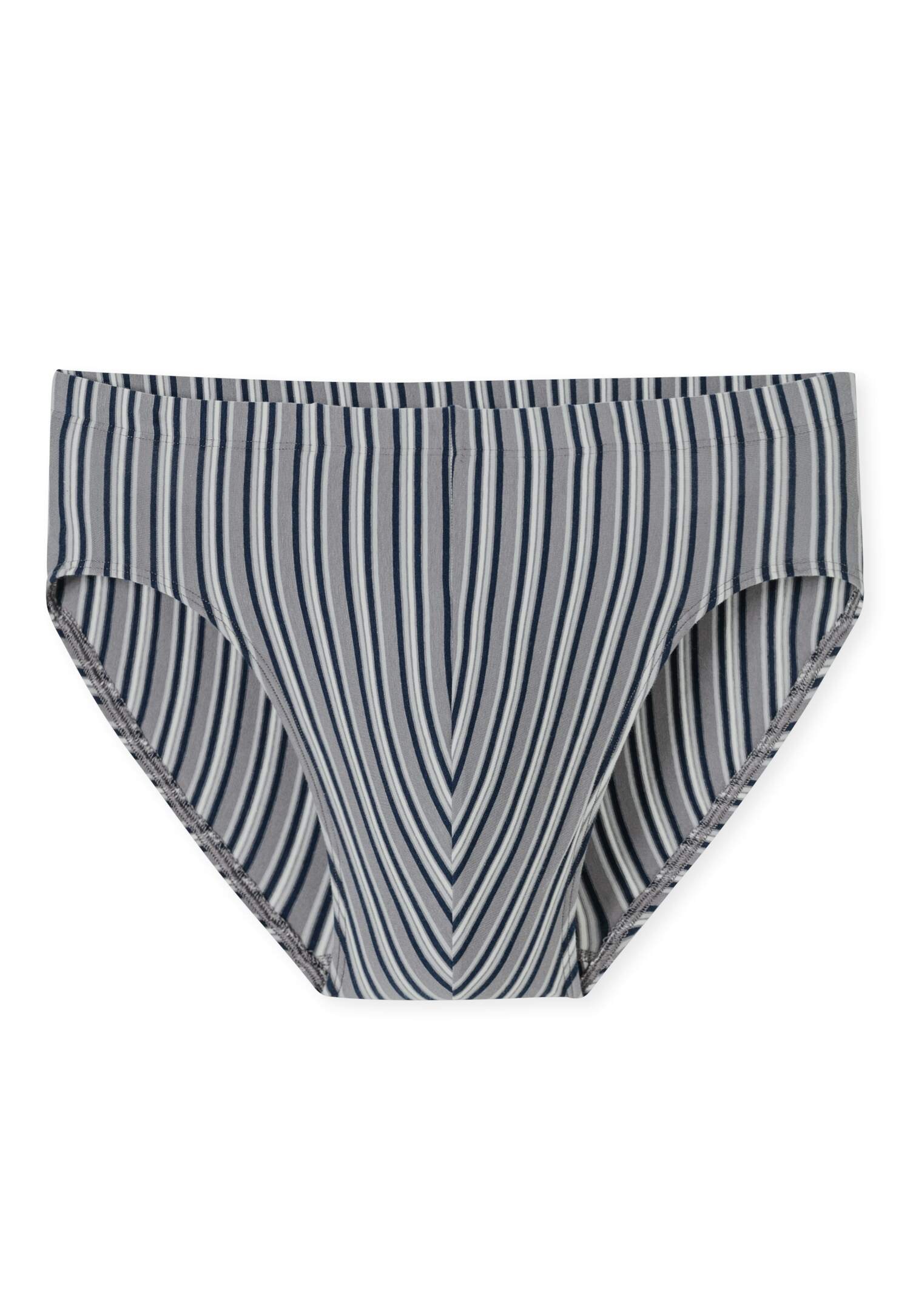 navy-blau gestreifter Supermini Slip für Herren, aus der beliebten SCHIESSER Serie '95/5', auch in großen Größen erhältlich, unsere Models tragen Größe 5/M, in perfekt sitzender, elastischer Single-Jersey-Qualität