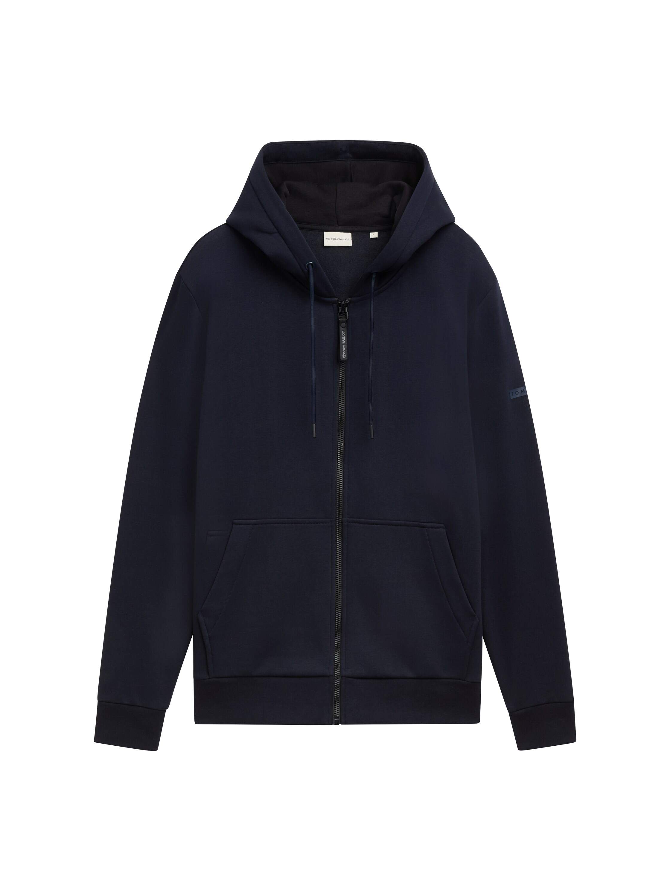 Hoodie Sweatshirtjacke mit kleinem Print am Ärmel, Kordelzug an der Kapuze und Eingriffstaschen. Leicht aufgerautes Innenfutter sorgt für ein warmes und weiches Tragegefühl.