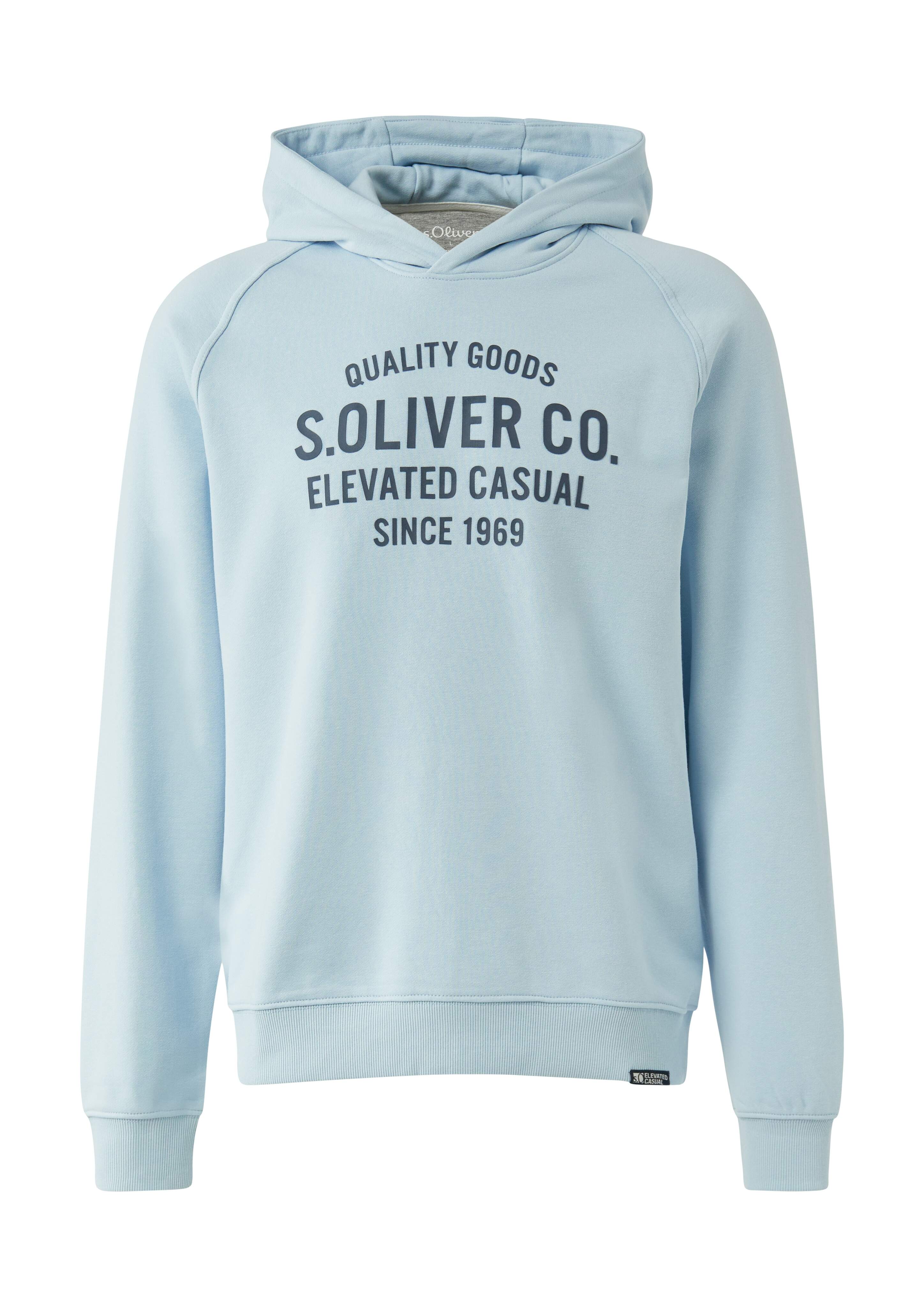 Dieses Sweatshirt aus weichem Baumwollmix überzeugt mit coolem Frontprint und praktischer Kapuze. Die Regular Fit sitzt angenehm locker, die Rippblenden geben dir Halt. Perfekt für entspannte Tage – ob zuhause oder unterwegs.