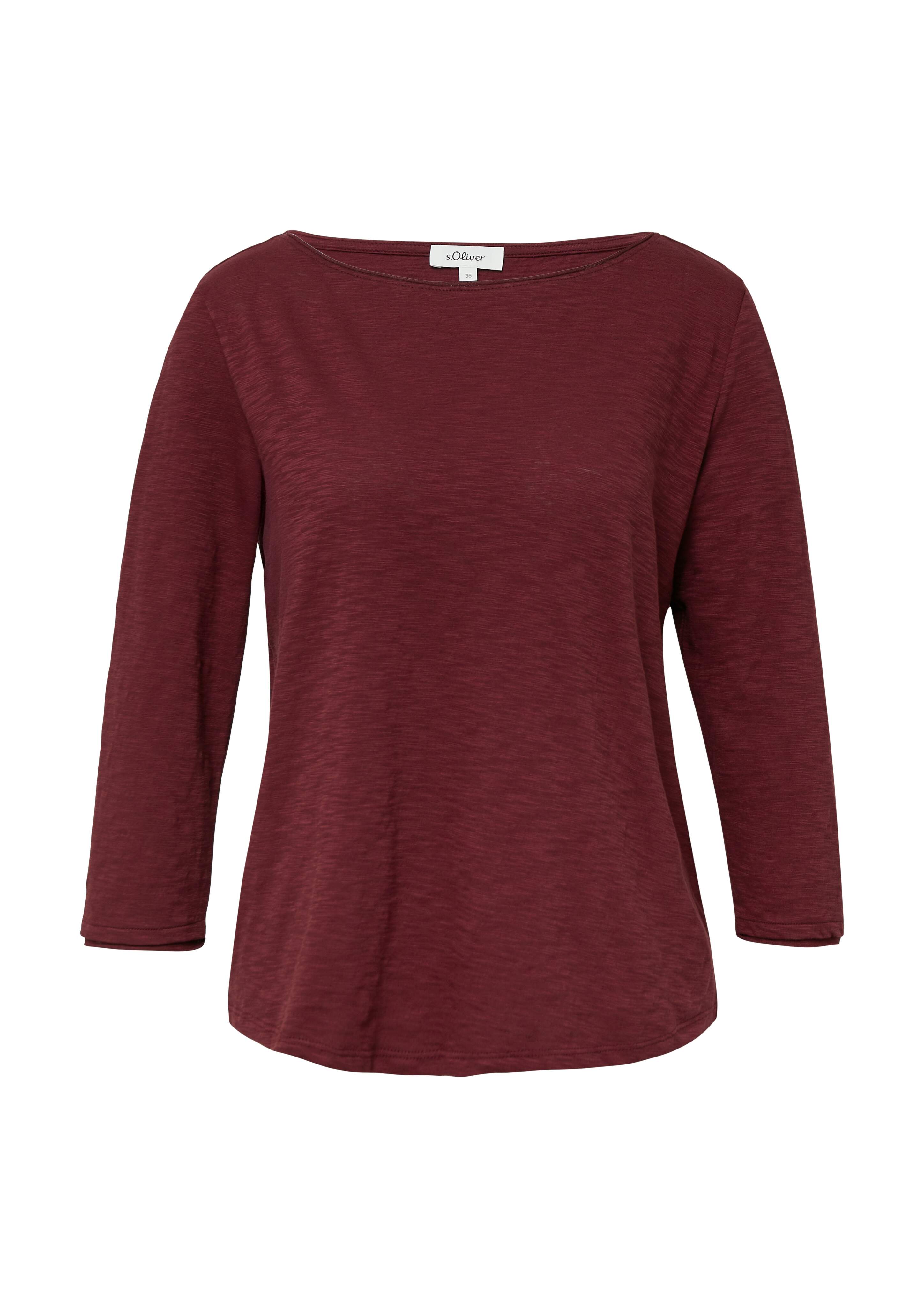 Das weiche Jersey-Shirt mit charakteristischer Flammgarnstruktur begleitet dich lässig durch den Tag. Die 3/4-Ärmel und der klassische Rundhalsausschnitt machen es zum vielseitigen Lieblingsteil in deiner Casual-Garderobe.