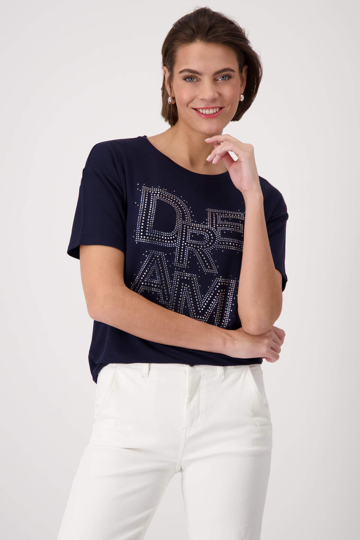 Dieses T-Shirt aus Viskose und Modal bietet dank des elastischen Materials einen hohen Tragekomfort. Die funkelnden Strasssteine bilden den Schriftzug „Dream“ und verleihen dem T-Shirt einen besonderen Touch.