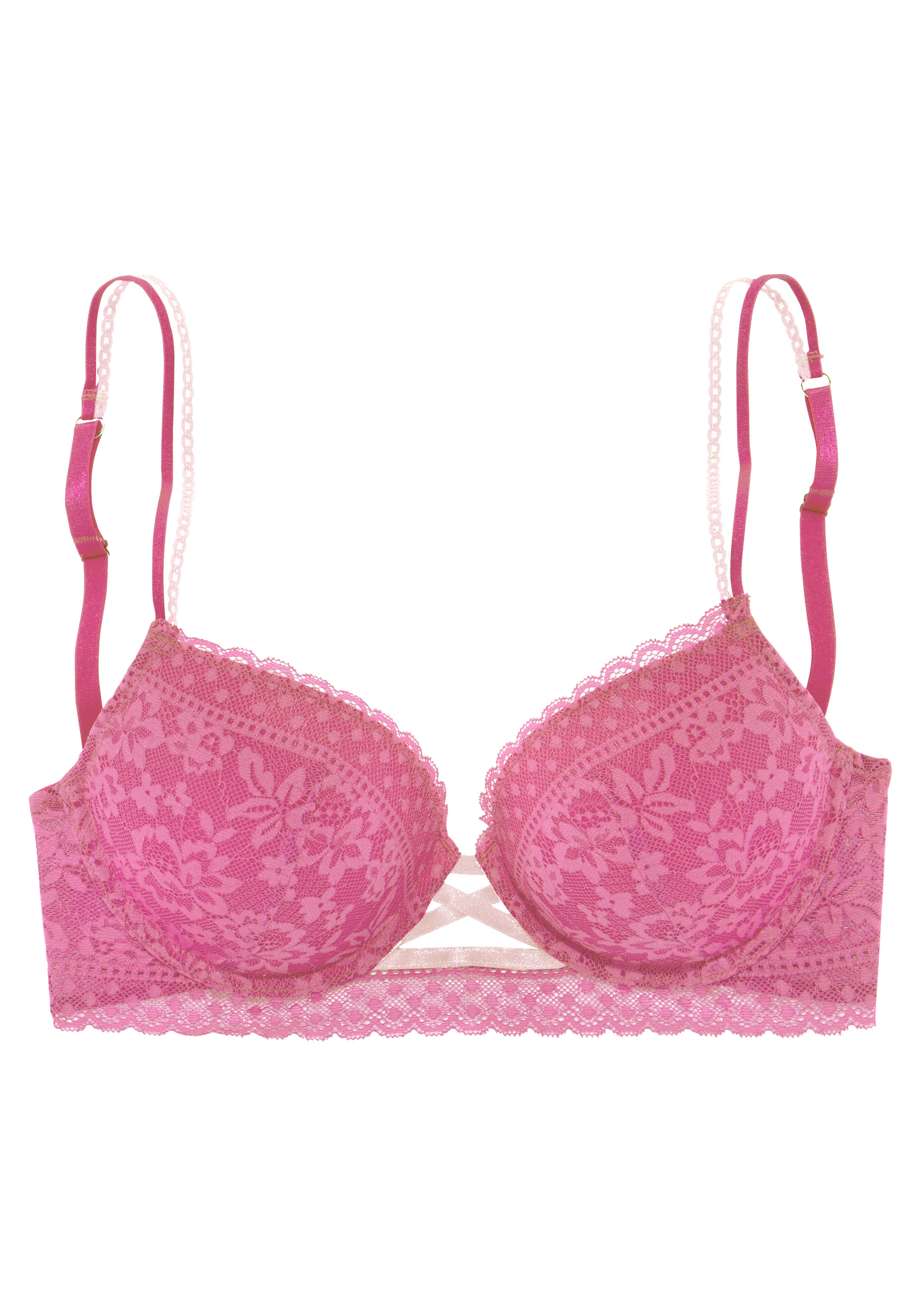 vivance Femininer Push-up BH mit herausnehmbaren Kissen. Cups und Unterbrustband aus anteilig recycelter Spitze in floraler Optik. Träger und Rückenverschluss individuell verstellbar. Passende Unterteilen aus der gleichen Serie erhältlich. Mit Liebe & Leidenschaft in Hamburg kreiert. Reizwäsche. Verführerische Dessous. Spitzen-Dessous. Romantische Dessous. Verspielte Dessous. Spitze aus 60% Polyamid recycelt, 27% Polyamid, 13% Elasthan