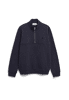 The WAARLO LOOP sweatshirt is crafted from robust organic cotton with a soft surface and a lightweight loopback interior. The loop structure inside keeps the fabric lighter and more breathable. It features a half-zip stand collar and subtle logo embroidery.