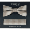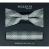 Dieses Set der Marke Willen ist ein wahrer Eyecatcher. Bestehend aus einer hochwertigen Fliege, sowie einem perfekt abgestimmten Einstecktuch im gleichen Design. Diese edle Kombination passt besonders gut zu Anlässen wie Hochzeiten, Bällen und anderen Festlichkeiten. Angelehnt an die Farben der Damen Cocktailkleider avancieren Ihre neuen Lieblingsaccessoires so zum doppelten Blickfang auf Ihrem nächsten Event.