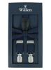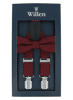 Dieses Set der Marke Willen besteht jeweils aus einer unifarbenen Herren Fliege und den passenden Hosenträgern. Diese bilden eine perfekt abgestimmte Kombination der beiden Herren Accessoires und runden jedes Outfit ab. Das Set eignet sich besonders für ein stilbewusstes und modisches Auftreten. Es kann sowohl im Business-Alltag als auch zu Feierlichkeiten jeglicher Art getragen werden. Die klassischen Farben sind für jeden Geschmack das Richtige. Durch ihre Y-Form und elastischen Träger verfügen die Hosenträger über einen perfekten Sitz. Zudem ist das Rückteil der Träger mit einem Ledereinsatz veredelt. Mit diesem Set erhalten Sie eine starke Kombination der beliebtesten Herren Accessoires inklusive Verpackung bequem nach Hause geschickt.
