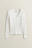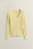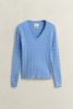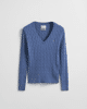 Zopfstrick V-Neck Pullover aus Stretch-Baumwolle
