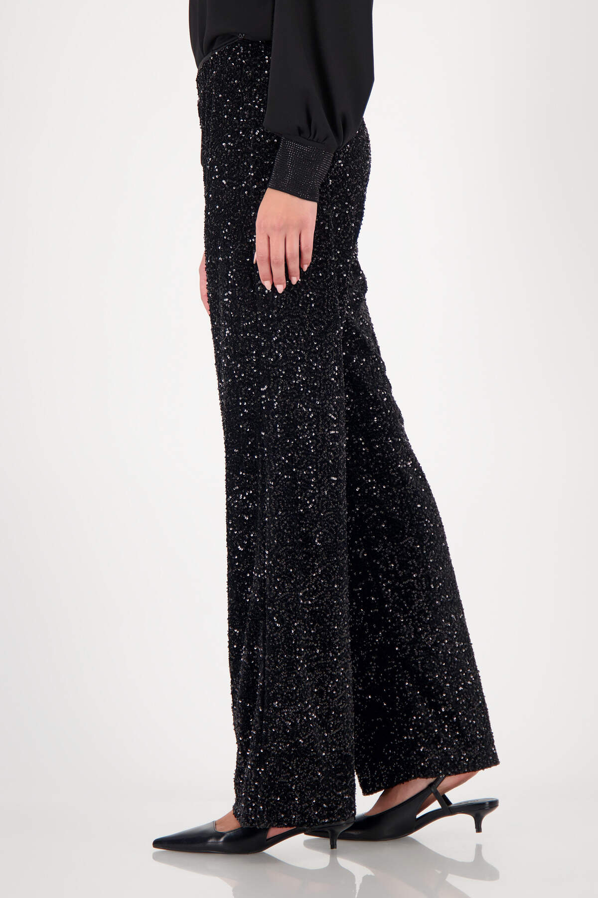 Wide-Leg-Hose mit Pailletten